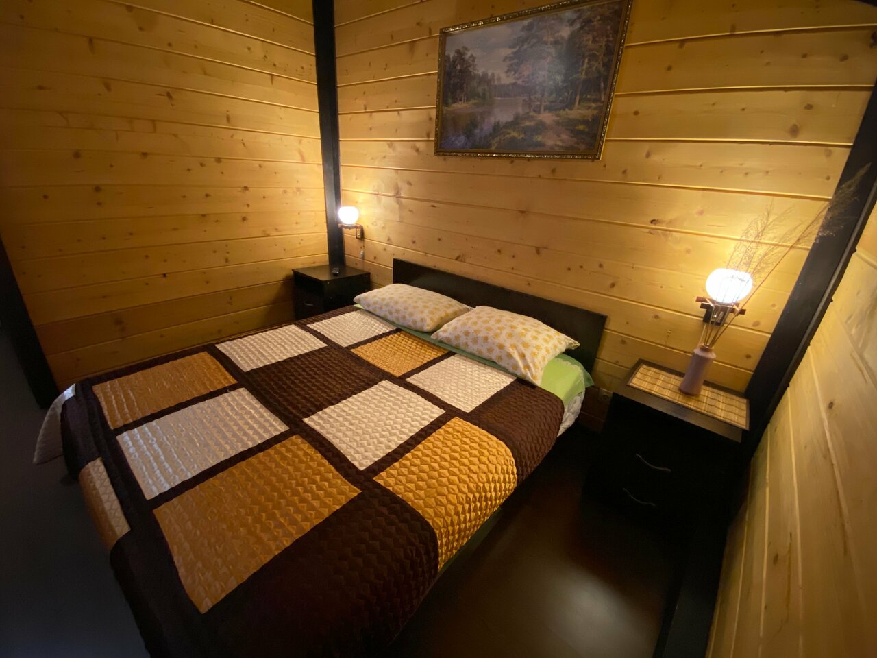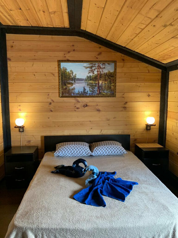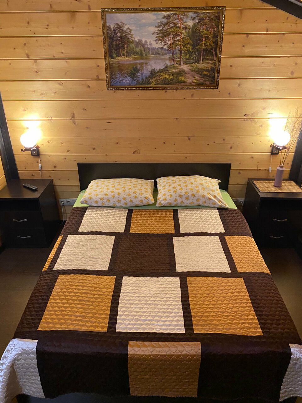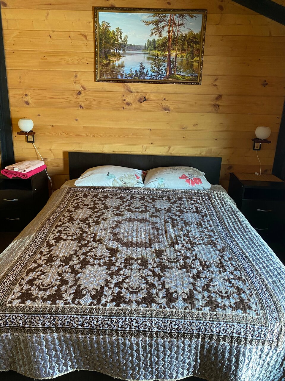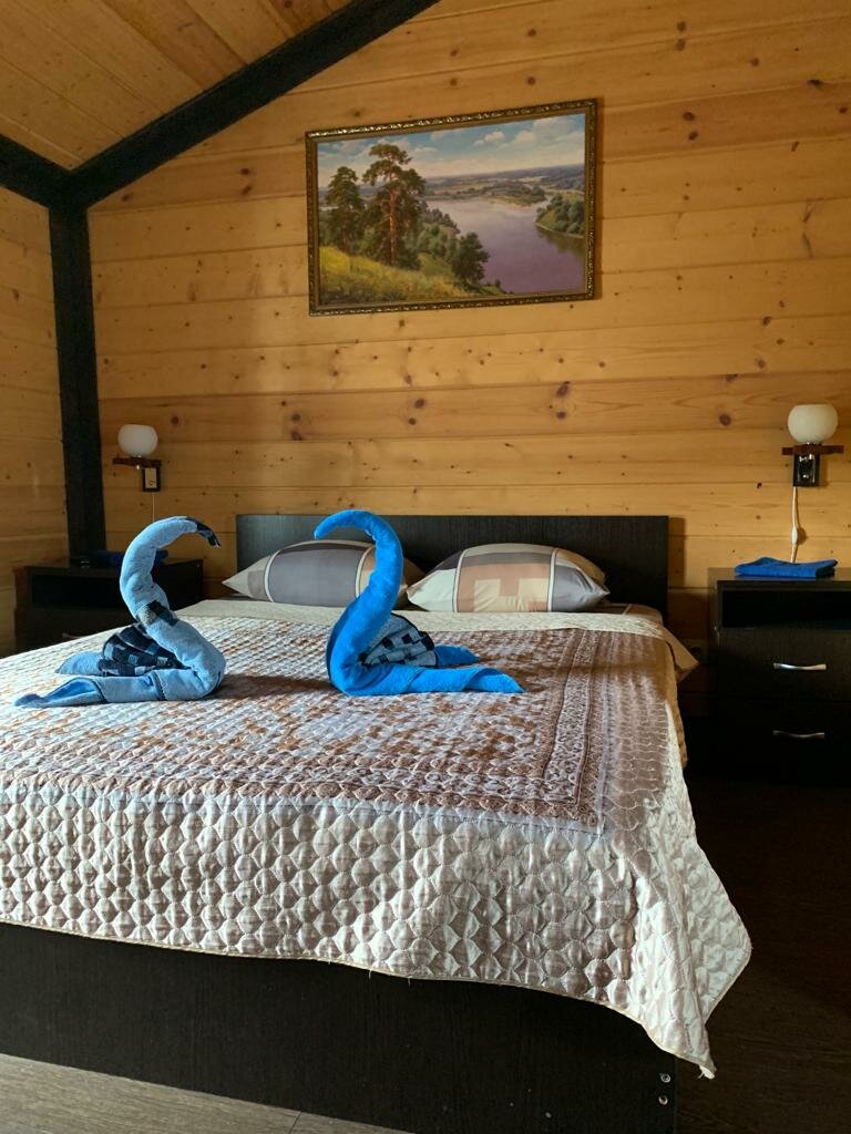 Комфортный номер в отеле «Лукино» с большой двуспальной кроватью , свежим постельным бельём, душем в номере, большим телевизором.