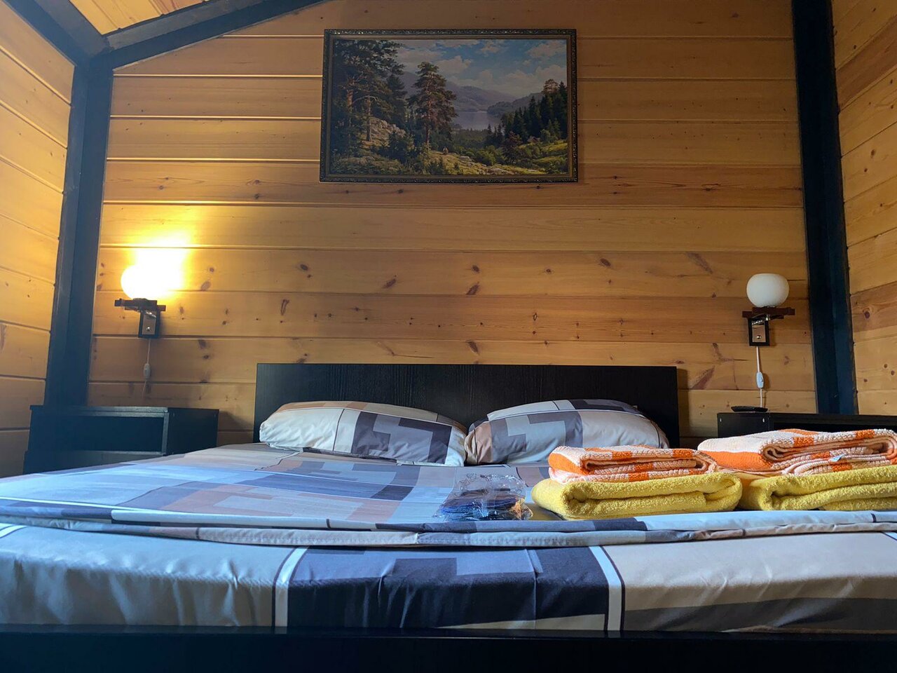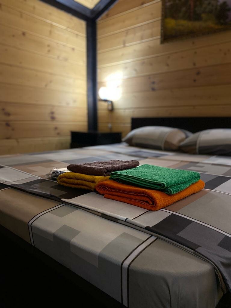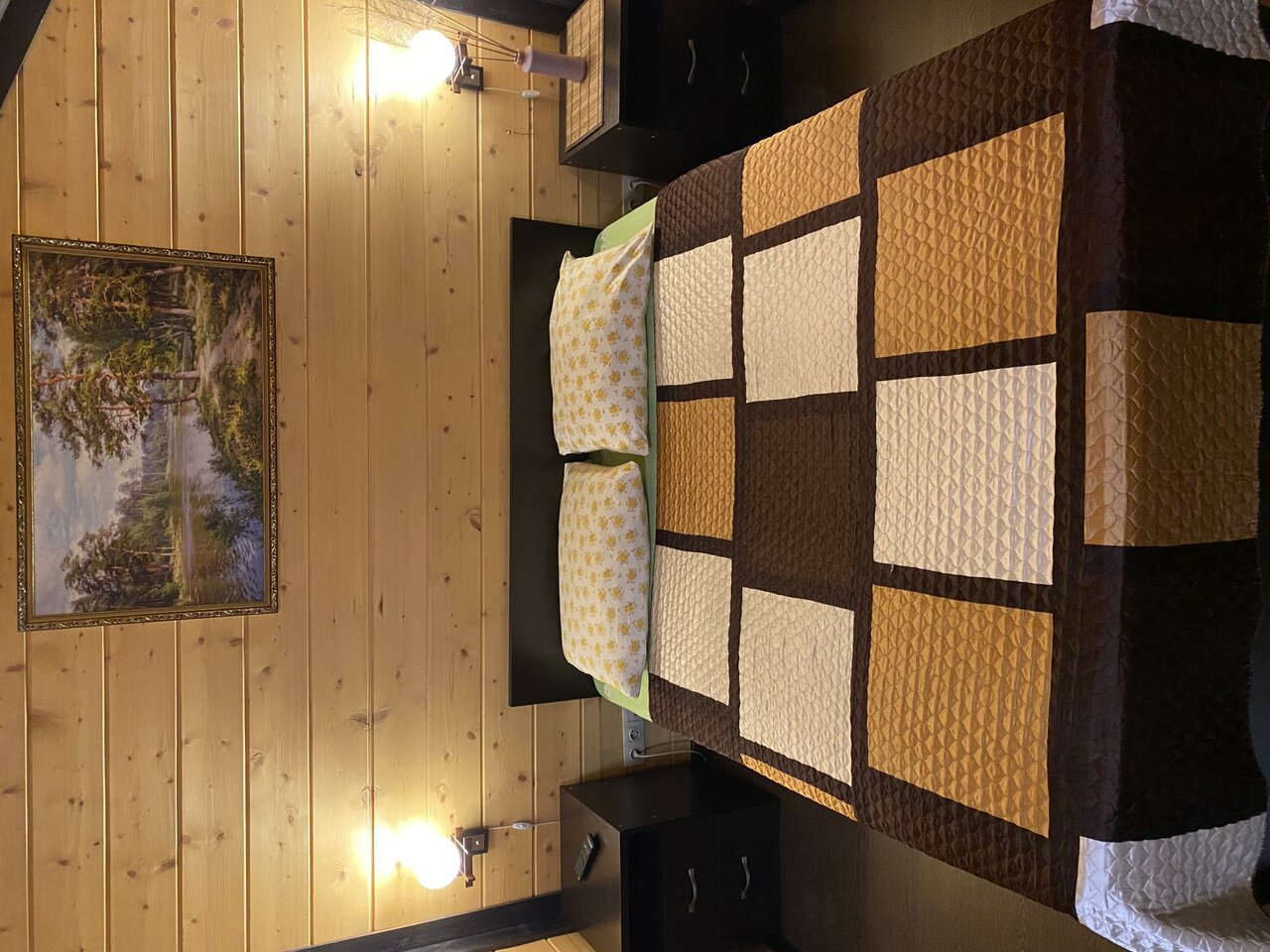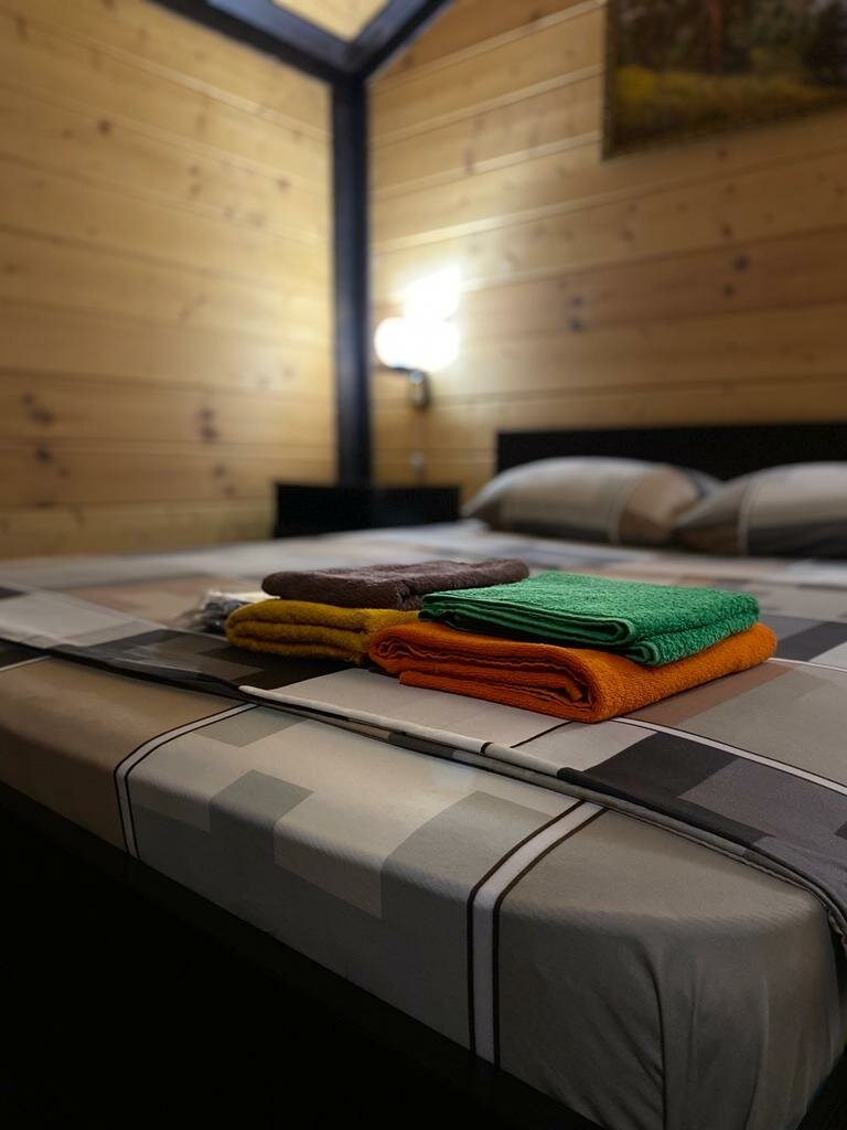 Номер комфорт с большой двуспальной кроватью и дополнительной односпальной кроватью , большим телевизором, столиком, душевой кабиной в номере, тапочками, моющими принадлежностями, полотенцами. Чай, кофе входит в стоимость.