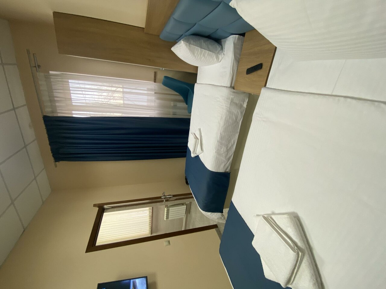 Заселились в номер 6, на 3 этаже, номер прекрасный. Двухкомнатный, чистый, светлый. Когда зашли в спальне была открыта форточка, сразу закрыли, но спали с огромным роем комаров. Легли спать и вскрылся еще один минус очень тонкие стены, всю ночь не могли спать из-за шумных соседей(