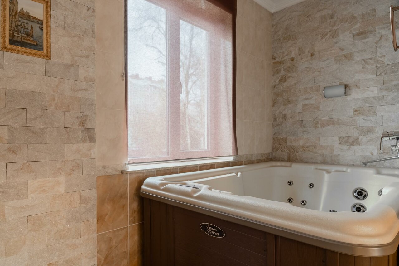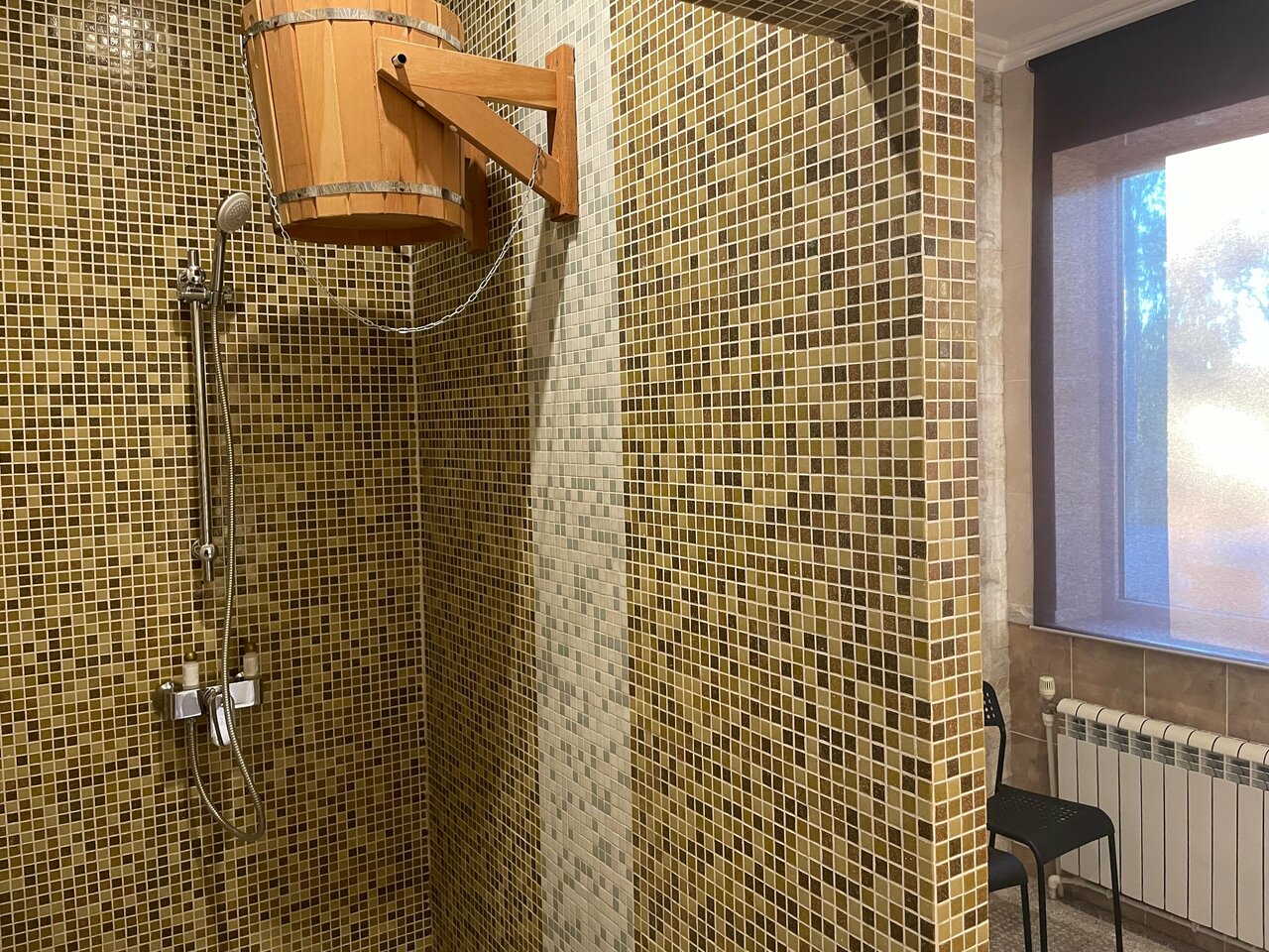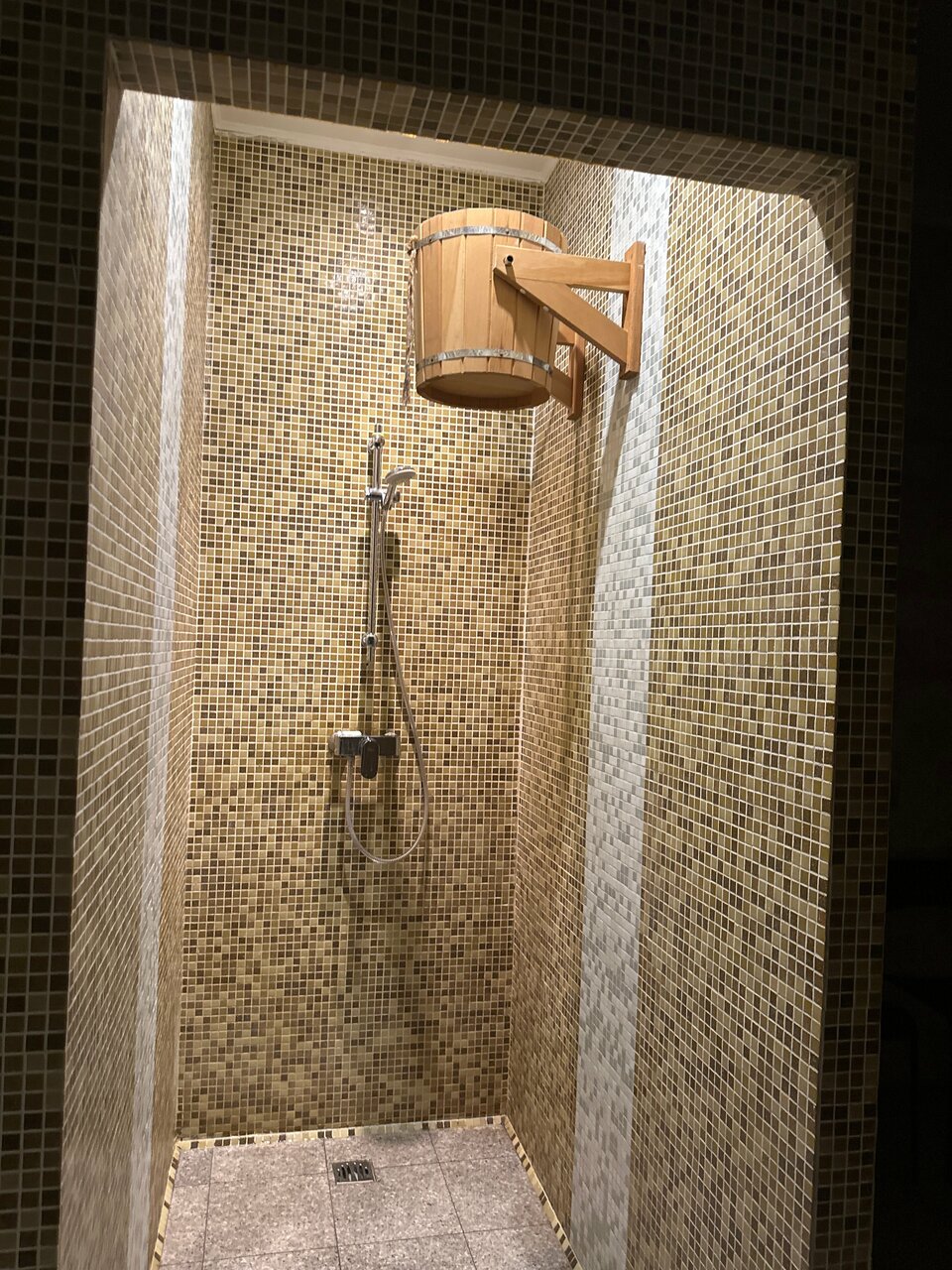 Просторный номер.Есть сауна можно облиться обливным ведром.Все бы хорошо,но не работает большое массажное джакузи, очень расстроился !!!