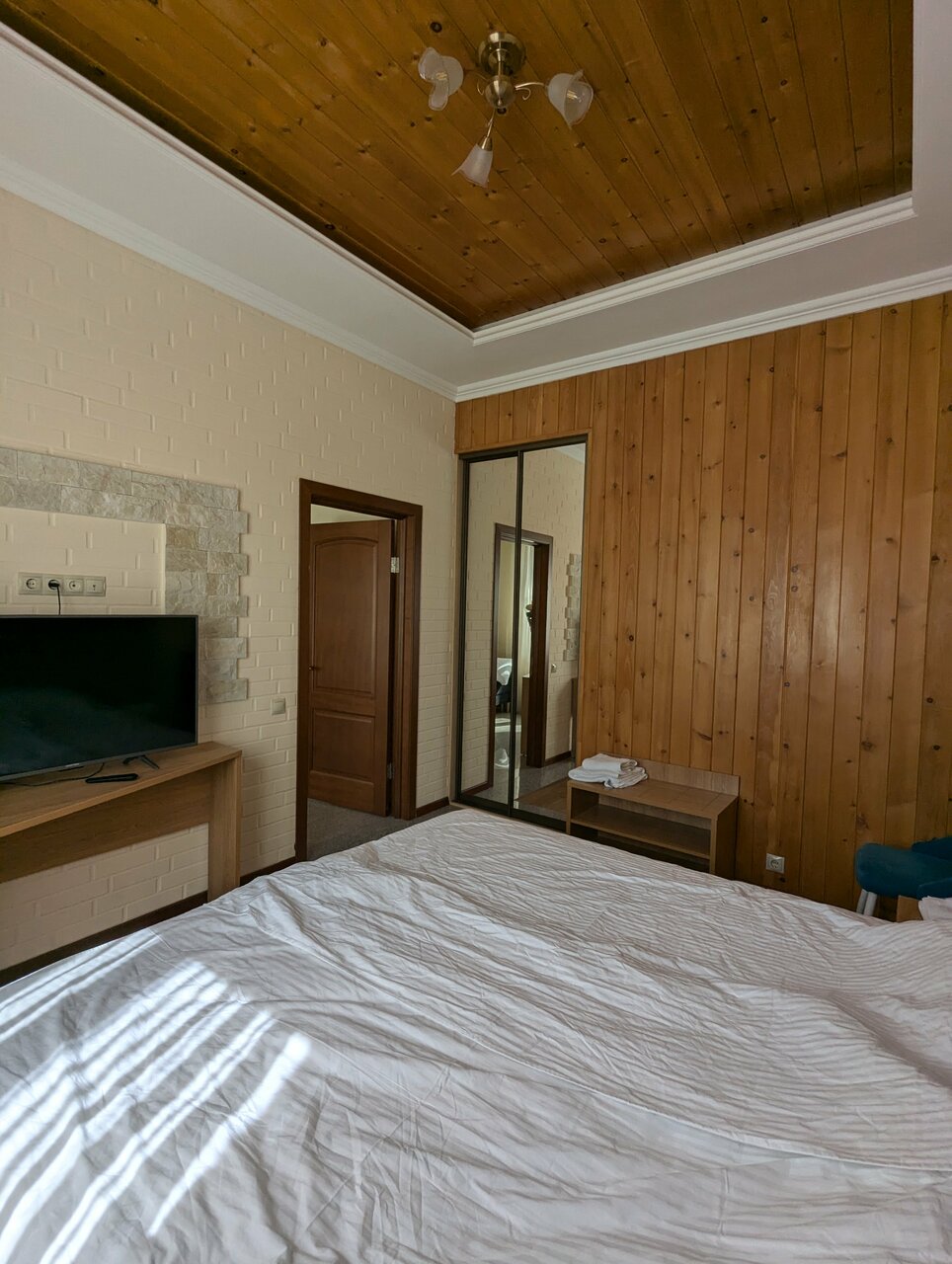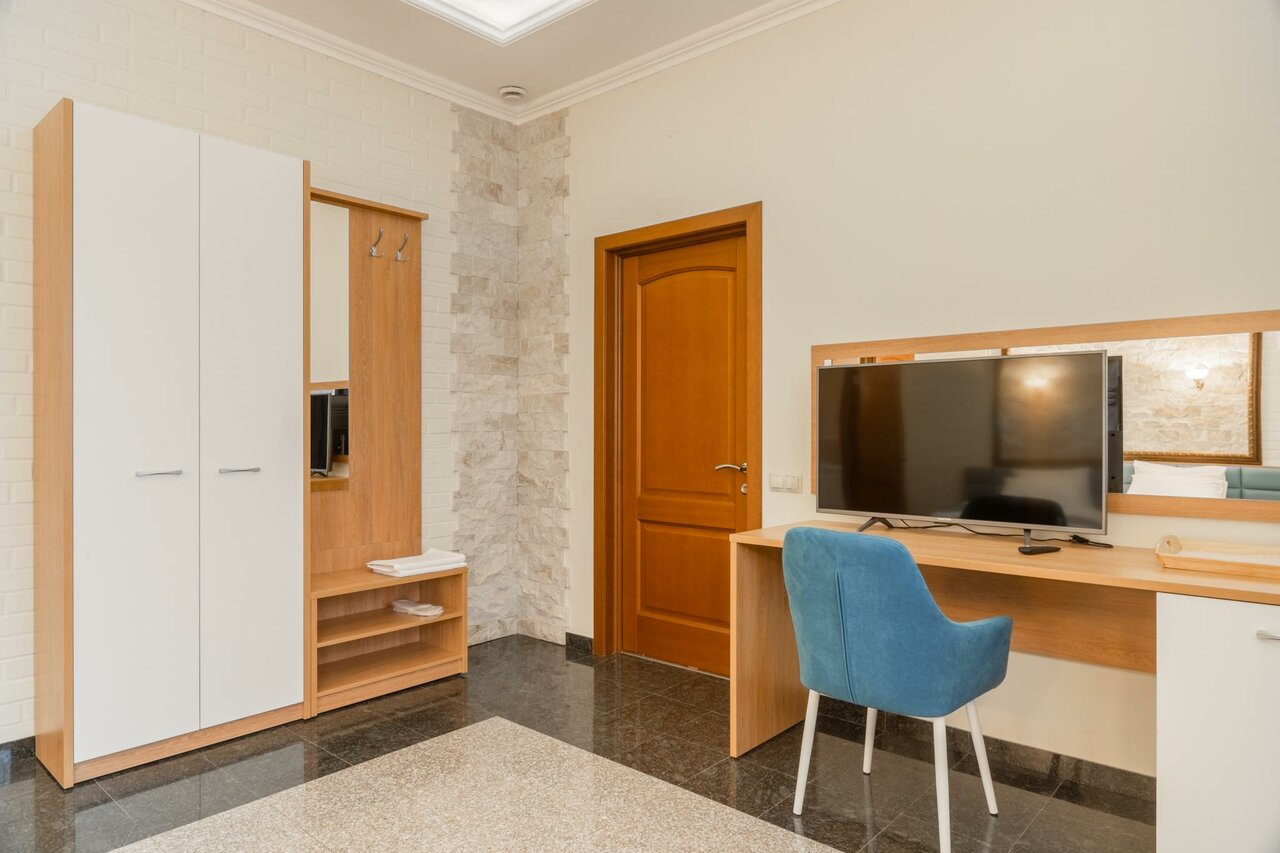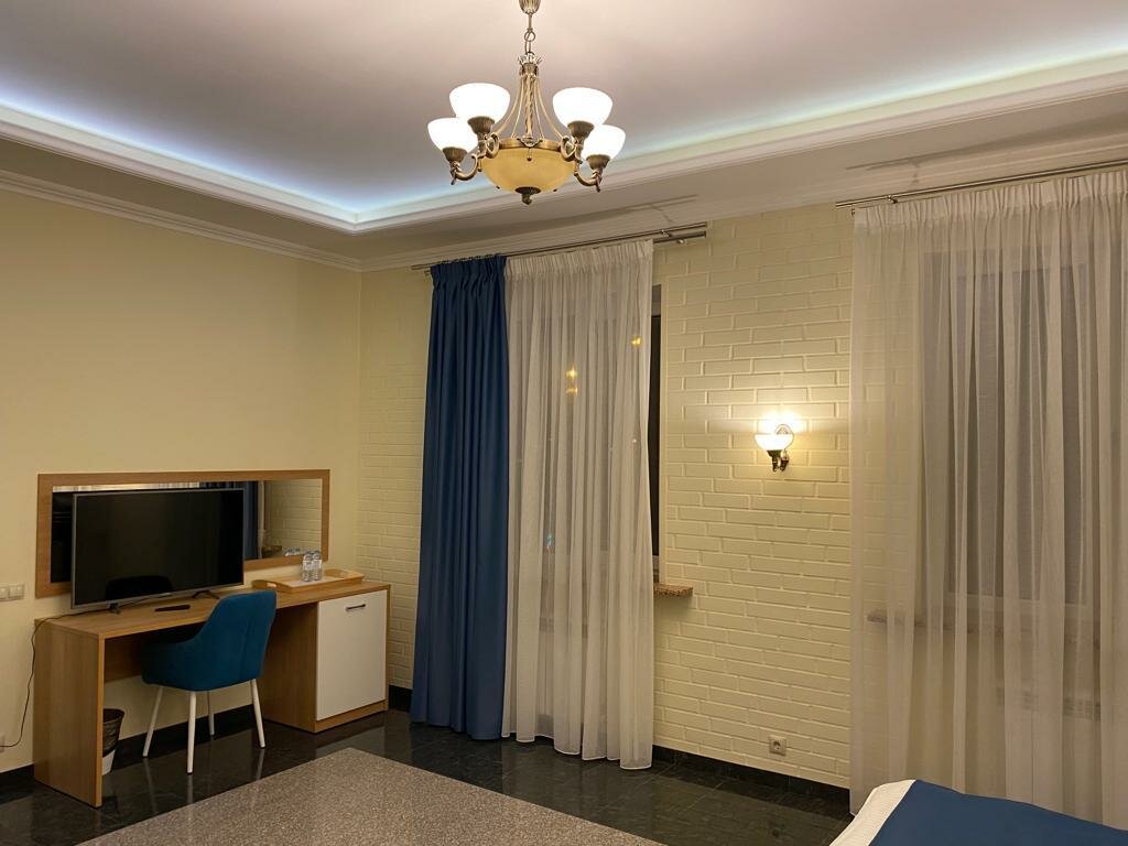 Очень понравился отель, в номере чисто, уютно, свежий ремонт, приятно находиться. Соседей практически не слышно. На телевизоре есть кинопоиск с подпиской. Все супер, один минус — долго добираться.