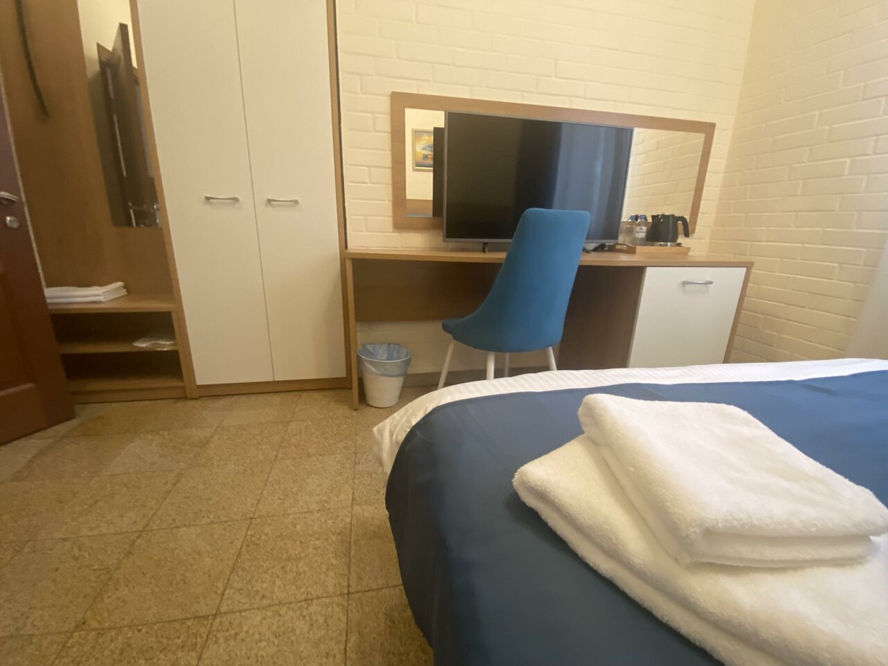 Плюсы : Персонал доброжелательный! Парковка при гостинице. Чистый, хоть и маленький, номер. Минусы: смарт тв при очень плохом интернете + не самый мощный тв — ну ‘такое’ решение… В номере не работает и интернет с телефона (конкретно мегафон) + сотовая связь с перебоями. Для меня наличие интернета критично, если для вас нет, то вам, ч большей долей вероятности, понравится.
