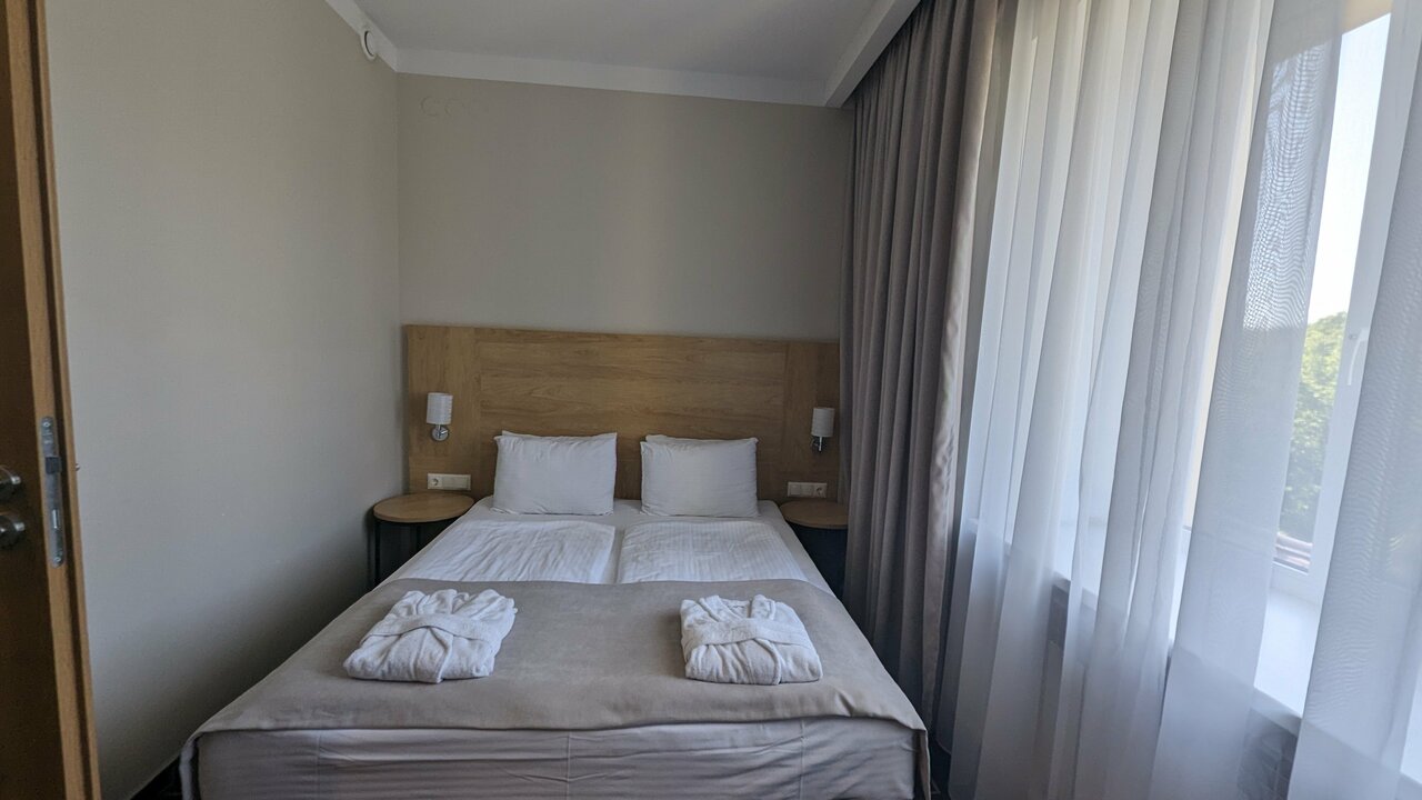 Хороший отель. Лучший в Балтийске, как мне кажется. Несомненным достоинством отеля является ресторан. Даже не стоит заморачиваться в поисках другой точки для ужина. Трижды ужинали в ресторане. Вменяемые цены, нормальное обслуживание. Интересное меню. Спа зона тоже вполне себе. Бесплатные велосипеды для прогулок. Номера хоть и небольшие, но уютные. Уборка/пополнение отельных принадлежностей/чистота на высоком уровне.