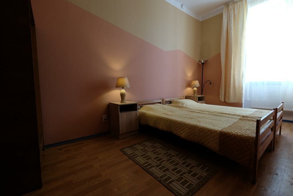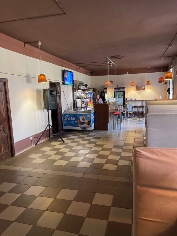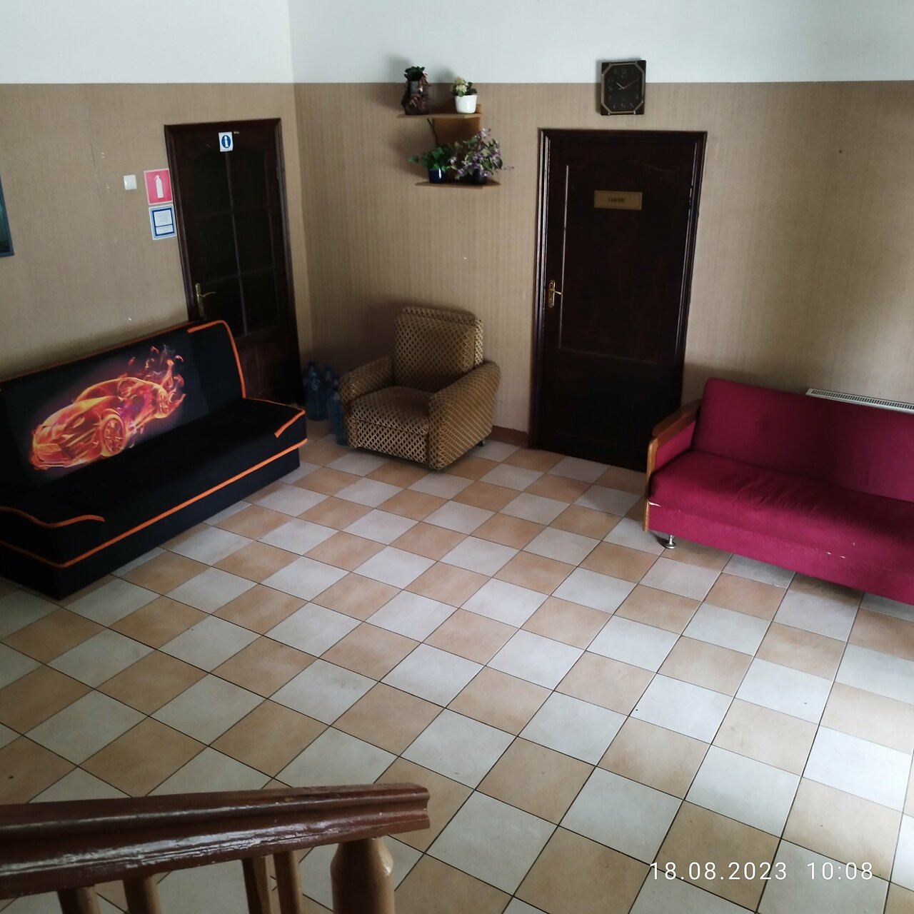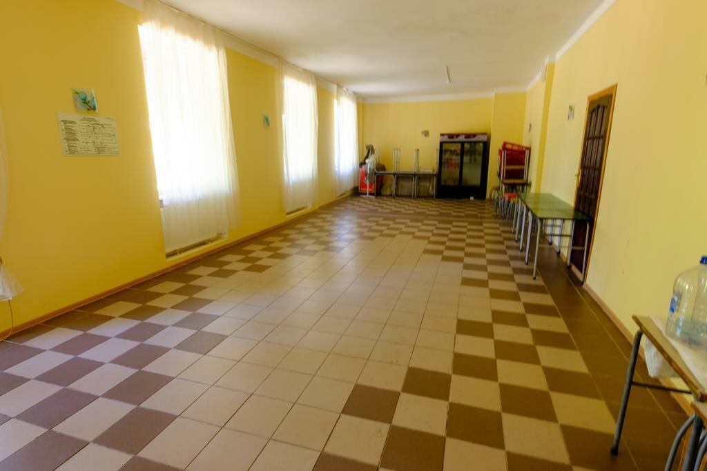 Бывшие немецкие казармы, пол в коридоре еще тех времен, не меняли. Номер стандартный с сан. узлом и холодильником, матрац удобный. Есть комната отдыха с камином, хорошей книжной библиотекой. Там же микроволновка, холодильник, стол, стулья, телевизор. На первом этаже столовая по очень хорошим ценам, все вкусно, жарят калкан и икру калкана на обед — это то что сама брала, а так выбор блюд вполне приличный. Также имеется кафе, которое работает до 12 ночи, там не дорогое разливное пиво, для поздно заезжающих есть что покушать. Рекомендую! Если вернусь на Балтийскую косу, то обязательно именно туда