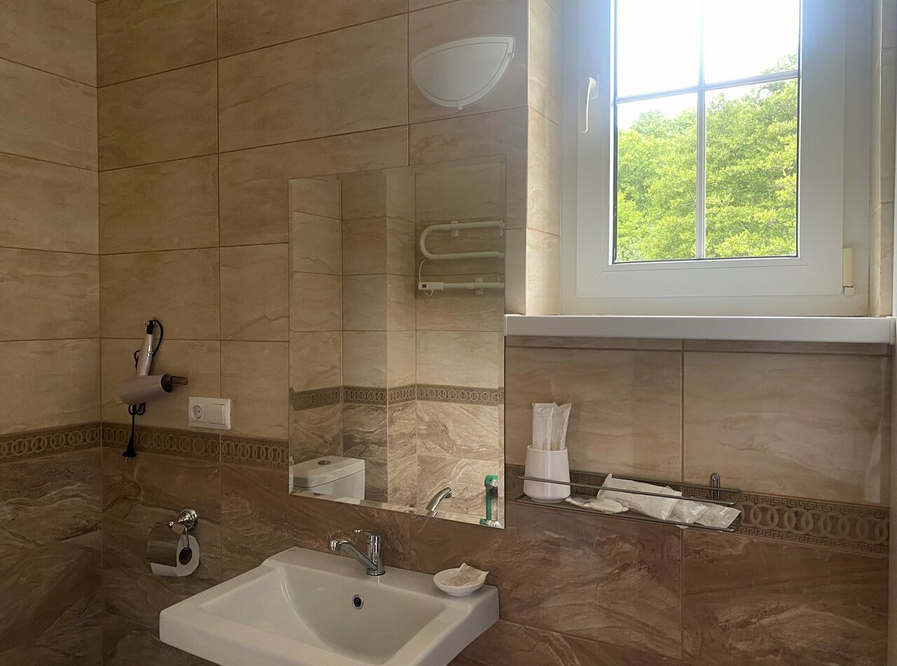 Место отличное. До моря 200 метром. На берегу можно собирать янтарь). Номера хорошие и просторные. Атмосфера царит очень приятная. Персонал хороший. Для детей есть площадка во дворе для игр. Все очень понравилось, кроме того что иногда забывают проводить уборку в номере. В следующий раз, обязательно выберем этот отель.