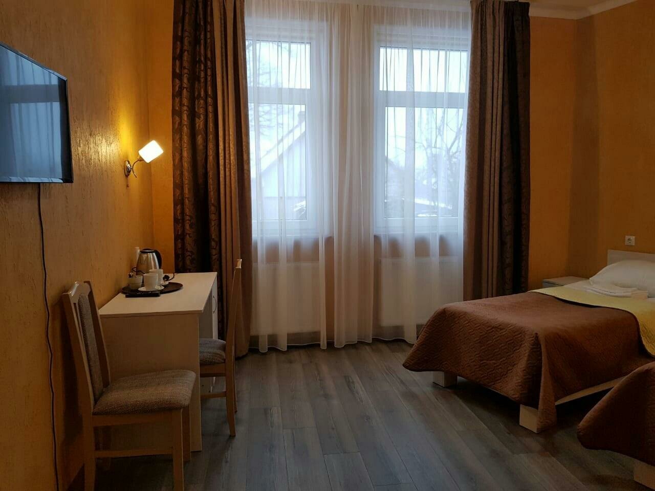 Хорошая гостиница чтобы остановиться. Номера чистые, уютные, все есть. Персонал отзывчивый, доброжелательный. Завтраки и ужин в кафе при отеле просто великолепны, и вкусно и питательно, кофе свежий и хороший! Из недостатков: не хватает полочки в ванной для шильномыльных принадлежностей, полотенечник работает по какому-то своему расписанию, как и отопление в номере. Двух местный номер, а розетки, бра, шкаф одежный и т.д. рассчитано на одного жильца.