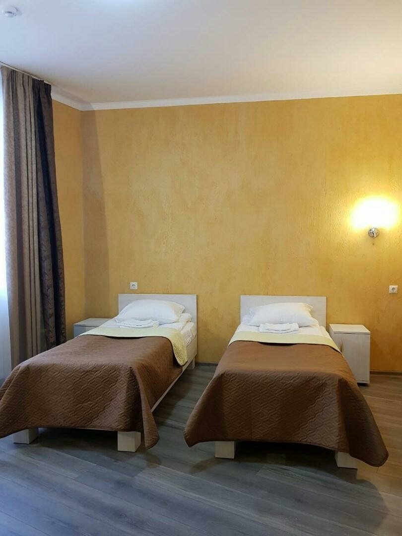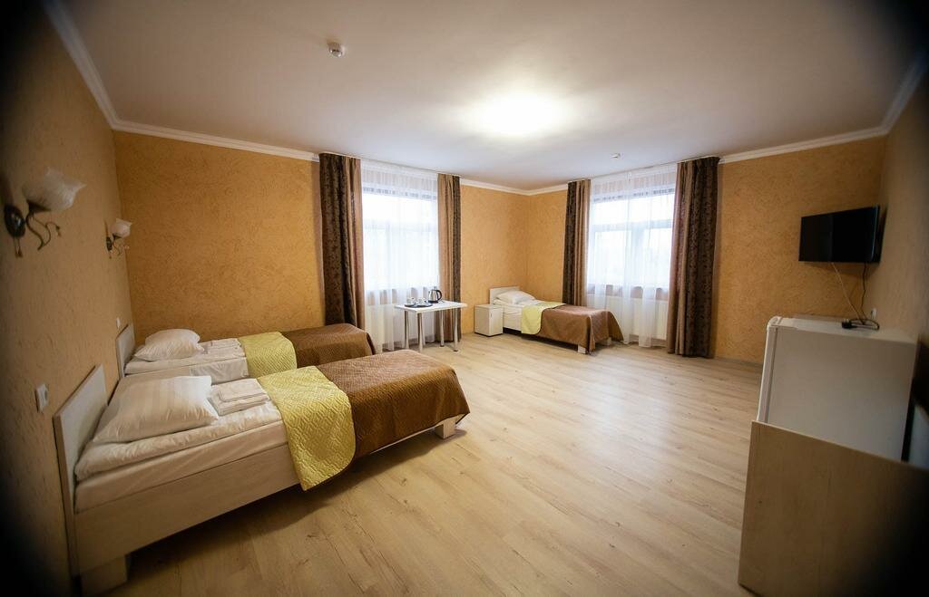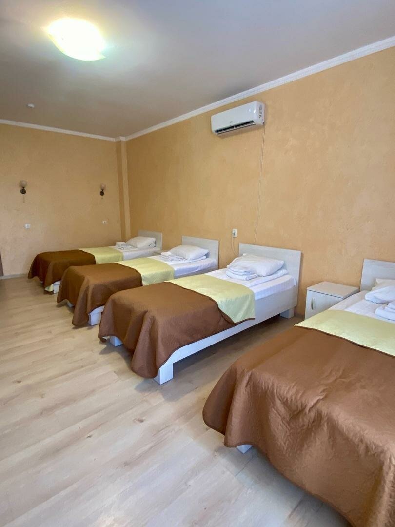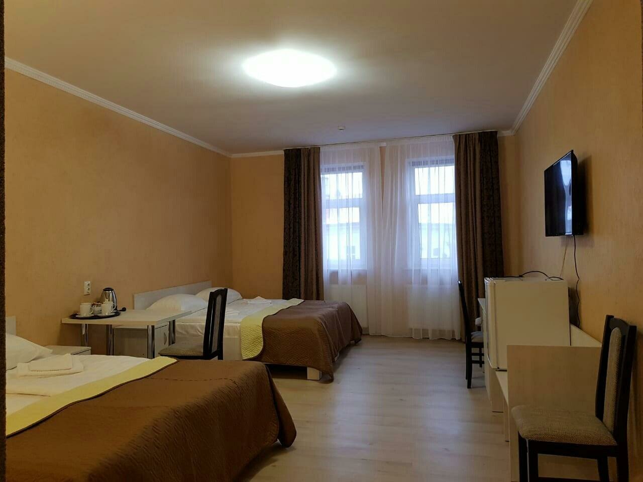 Хорошая гостиница, чисто, современно. В номере есть холодильник, тв, кондиционер. На цокольном этаже есть столовая от гостиницы. Кормят хорошо. Комплексный ужин 300 руб. гостиница находится спокойном месте. До моря пешком 25-30 мин. Удобно ездить на машине (5-7 мин). Один минус: нет москитных сеток.