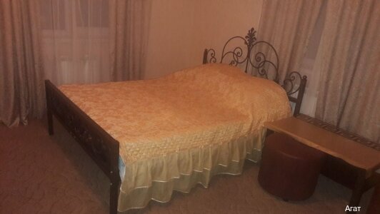 были проездом по пути в Крым, необходим был недорогой ночлег, выбрали Агат так как цена была более чем приемлема, звонили часа за четыре до приезда, заказали номер, номер небольшой, чистый, но постельное можно обновить, приятный персонал, eсть парковка, во внутреннем дворе есть столики, нет мангальной зоны, но нам разрешили пожарить на своем шашлычок, в общем для того чтоб передохнуть помыться и поспать самое норм,