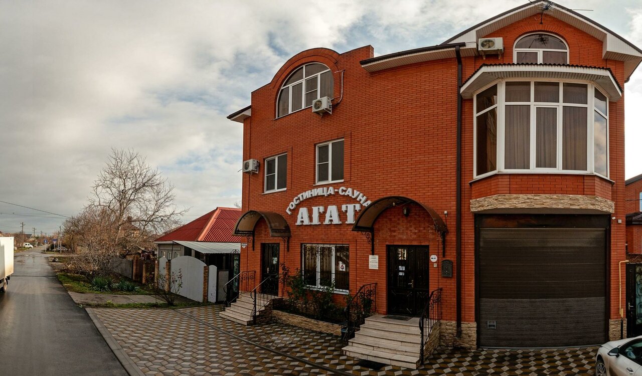 Гостиница «Агат» (Батайск, ул. Московская, 255) — мини-отель с круглосуточным режимом работы, предлагающий комфортное размещение в номерах с кондиционером, Wi-Fi, телевизором и холодильником. Гостям доступны: бесплатная парковка, бассейн, сауна, салон красоты, трансфер и услуги консьержа. В номерах — кухонный уголок, фен, сейф; разрешено проживание с животными. Завтрак по меню, время заезда — с 14:00, выезда — до 12:00. Удобное расположение: до центра города — менее 3 км. Контакты: +7 (988) 579-99-77, +7 (989) 720-00-61, +7 (915) 391-11-82. Цены от 1700 ₽/ночь.