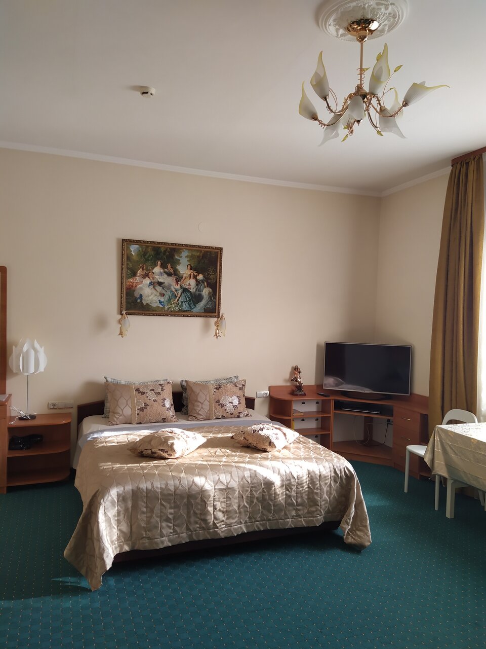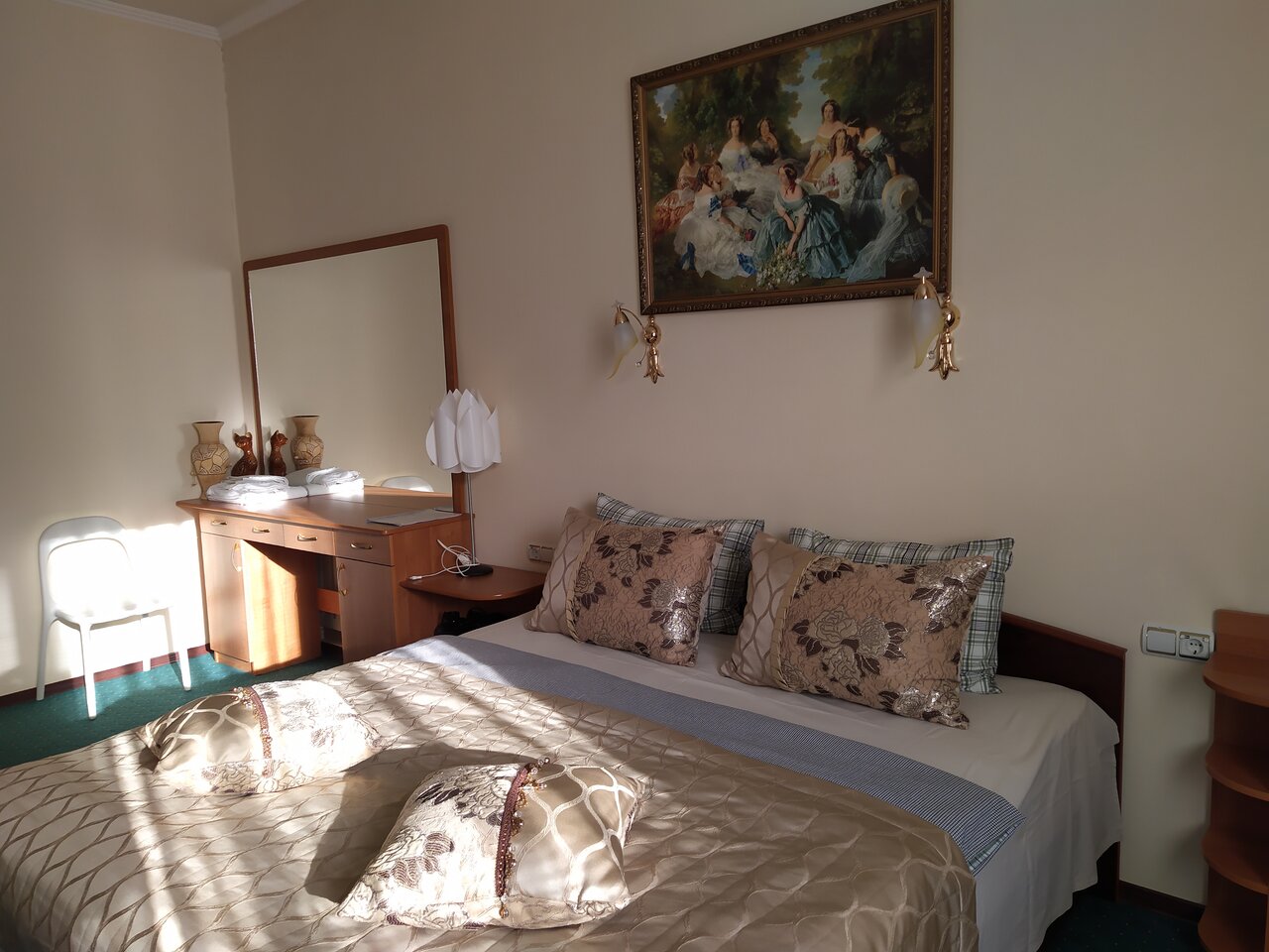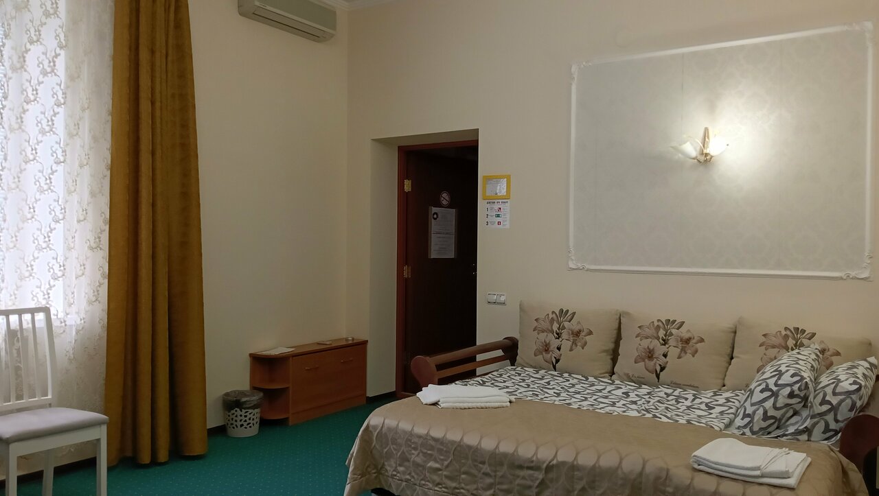 Отличное место! Останавливались с 13.08.2021 на 14.08.2021. Добрались до гостиницы глубокой ночью. Нас приветливо встретили, разместили, все показали и рассказали. Гостиница очень уютная, чистая и аккуратная. Номер замечательный. Имеется все необходимое! Удобные кровати с чистым постельным бельём, телевизор, гардеробная, санузел с душевой кабиной, полотенца, тапочки, посуда, бесшумный кондиционер, фен, фумигатор (на всякий случай), даже ватные диски и палочки. В холле размещен большой холодильник и чайная зона со всем необходимым, включая кулер. Соседей не слышали, хотя все номера были заняты, значит делаю вывод, что звукоизоляция достаточно хорошая. Ещё успели заметить ухоженную территорию. В общем нам все очень понравилось, в следующую поездку на машине в Крым обязательно остановимся здесь же.