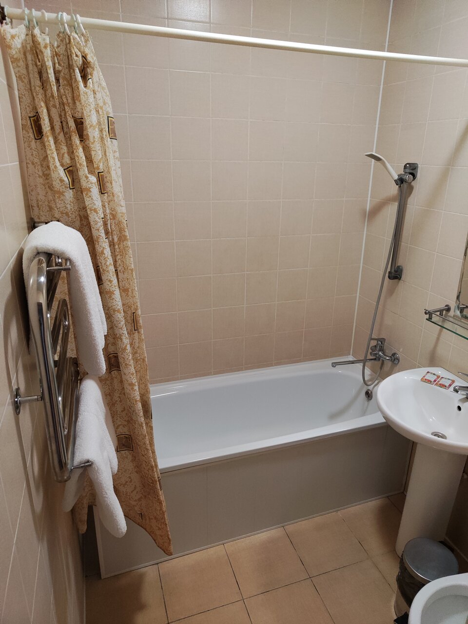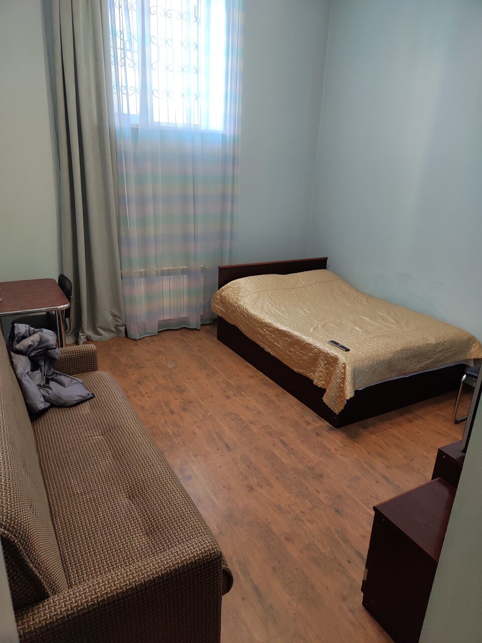 Из прошлого века, перенеслась эта гостиница. Полумрак, все из 90х, мебель, диваны,и кровати, столы в столовой, ванная, в общем Всё. А ценник, конечно не соответствует качеству. Не рекомендую. Можно посмотреть, квартиры за эту цену. А вот персонал, очень хороший и в номере было чисто и встретили тепло, что не мало важно.