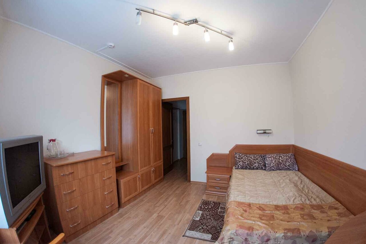 Худшая гостиница из всех, в которых я была. Я часто остаюсь в маленьких городах, проездом. И привыкла к разным условиям. Но здесь волосы на полу в сан узле, грязные коврики там же стали амбассадорами гостиницы. #стильутиль. Все пыльное и старое. Мало того что стоит выносимая вонь старьем, так ещё и канализацией воняло день и ночь. Кровать скрипучая, матрасы старые и самые дешёвые, проваливаешься на пружины. Холодно. В номере нет фена, полотенца не меняют (жила 2 дня, оставила на полу, чтобы сменили — никто даже не заходил в номер). Дверцы душевой не закрываются плотно.Телевизор — коробка, не плазма. Сплитсистема желтая до нашей эры купленная. Больше всего выбесила вонь. Ощущение что живешь в помойке. Даже за отсутствием альтернатив больше не остановлюсь здесь. А, и да, это ещё был полулюкс за 4 тысячи.