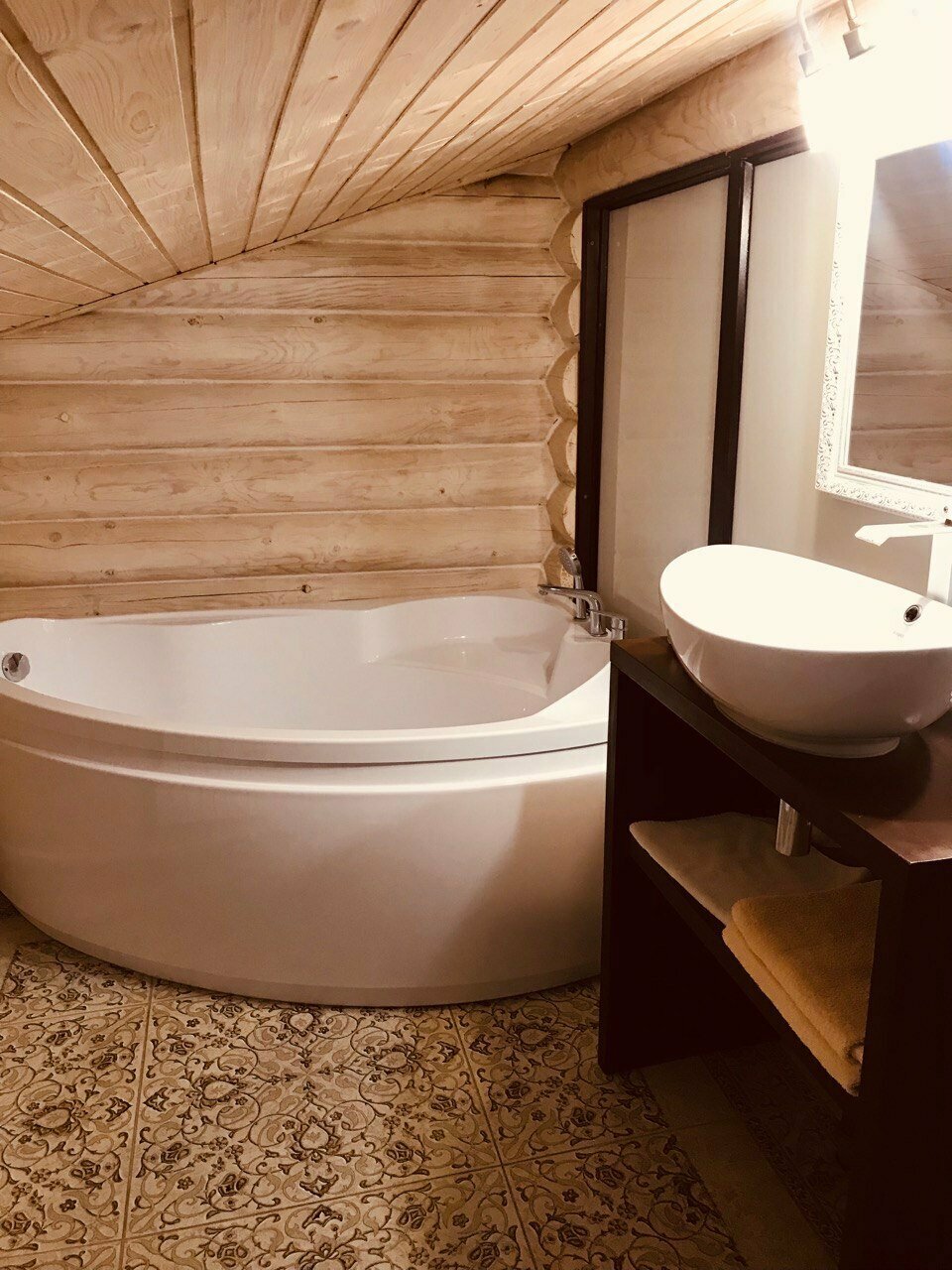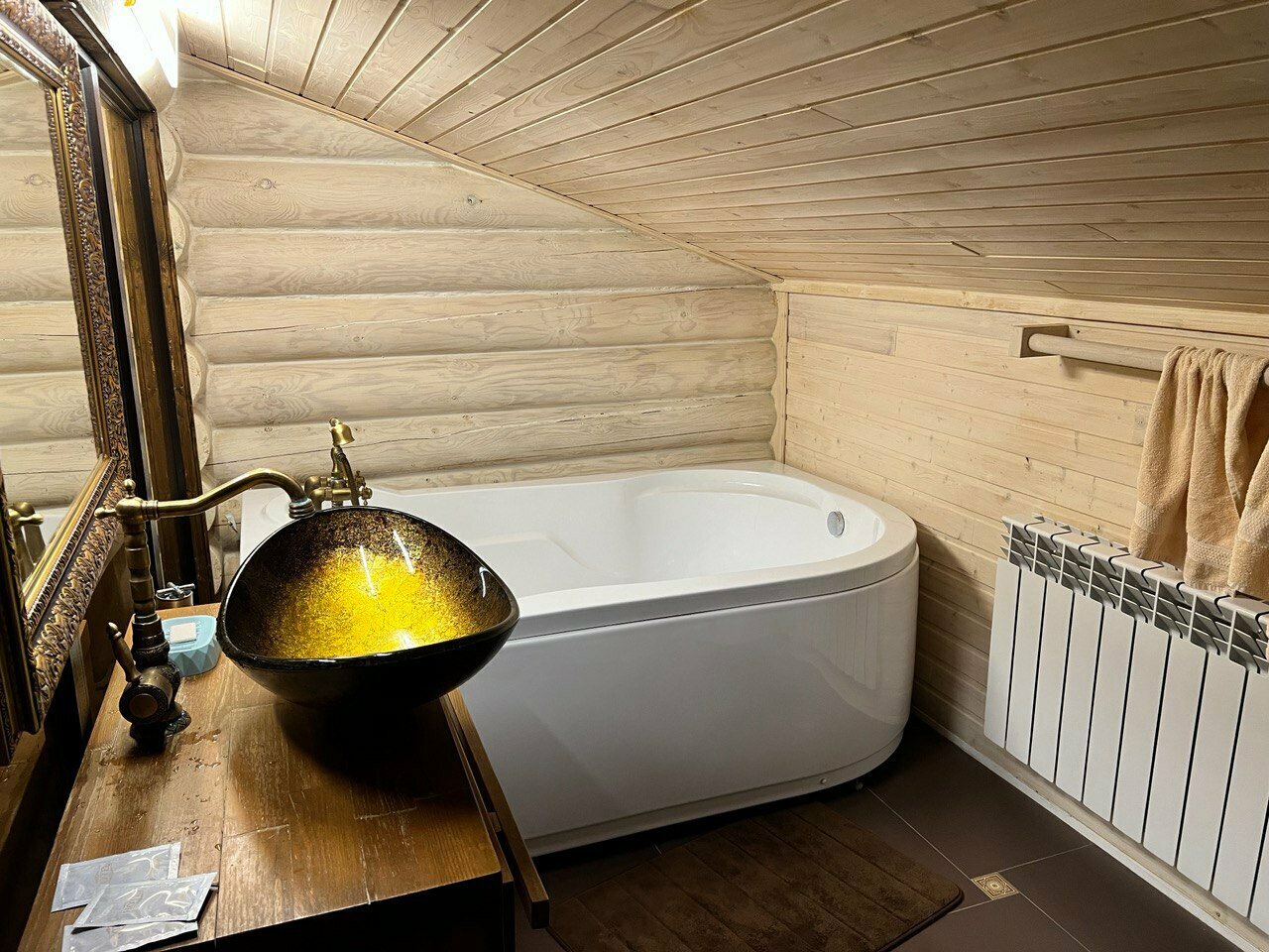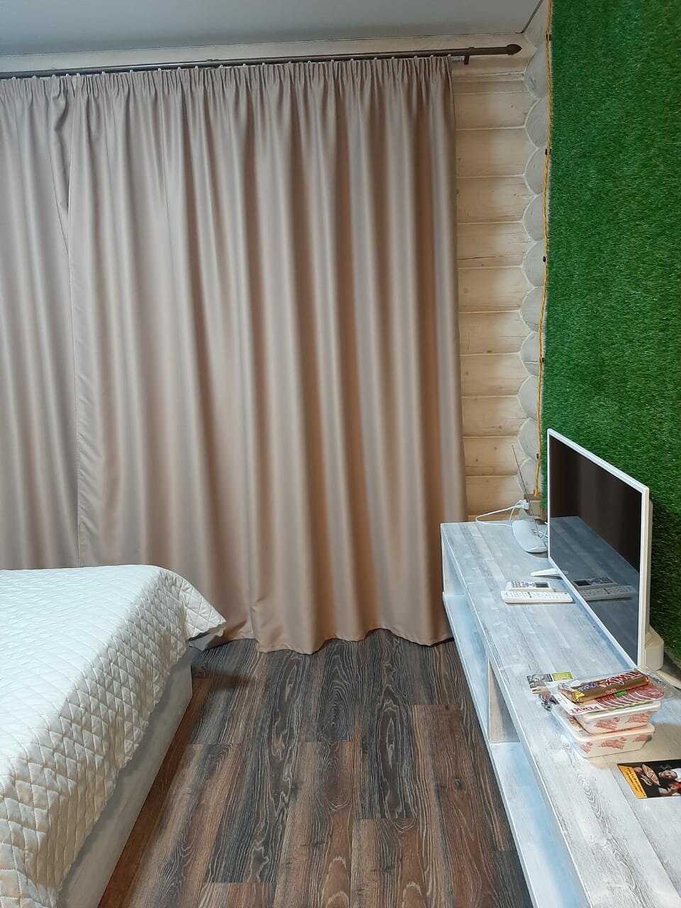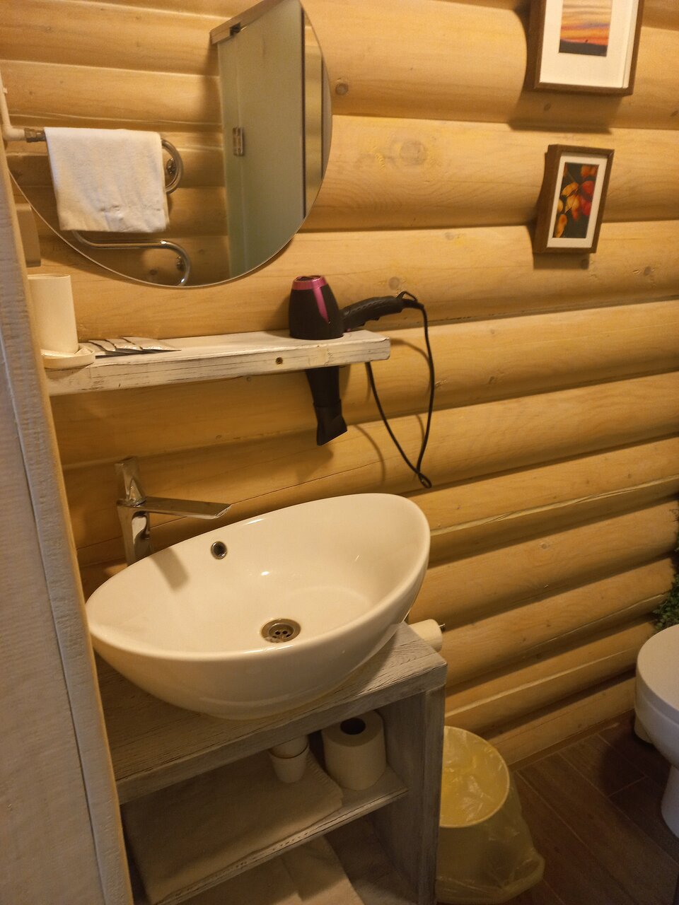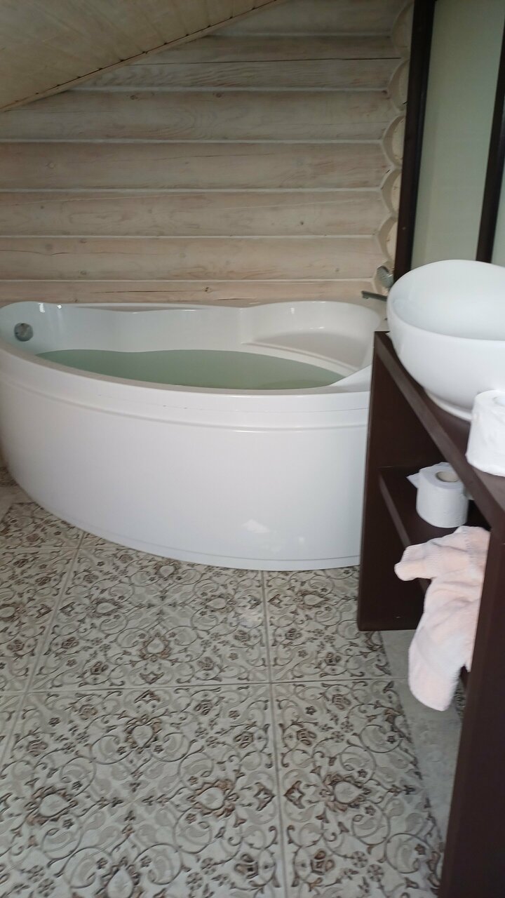Все отлично! Отель из сруба, все новое, простыни идеальны, в номере имеется чайник и фен. Хотя и находится рядом с трассой, в номерах тихо. Магазины в 5 минутах езды.