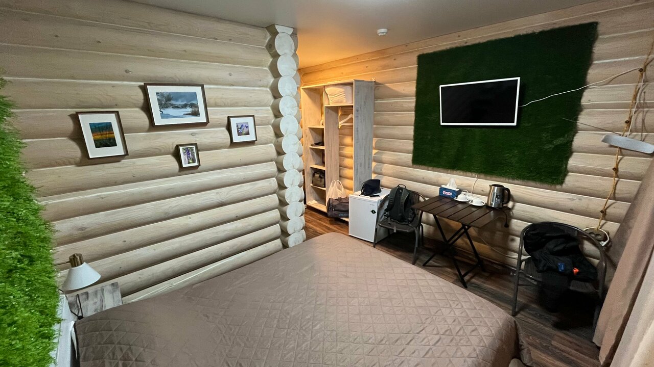 Хорошее место чтобы переночевать. Уборка и смена белья раз в неделю. Номер с двуспальной кроватью, но места в номере и для одного мало. Рядом хорошая столовая с удобным расписанием: можно утром позавтракать, пообедать и вечером поужинать.