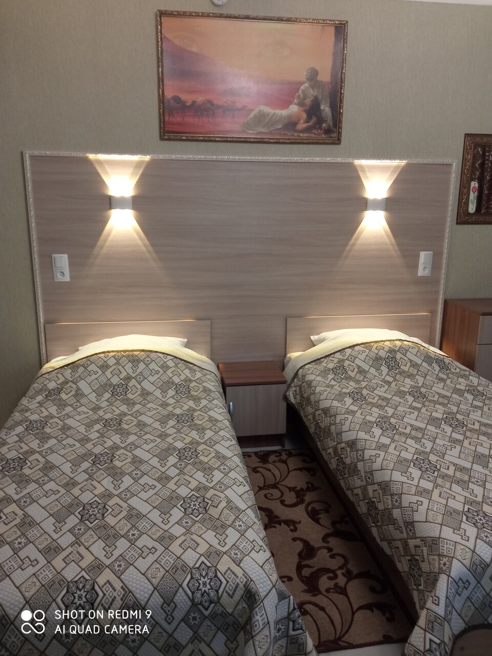 Однако, должен сказать, это пять. Крытая парковка во дворе. Чистый, просторный номер на троих, с удобствами, кондиционером, холодильником обошёлся дешевле чем на трассе две койки в пустой комнате с удобствами во дворе. Кухня в наличии, но готовить будете сами, если есть желание (возможно есть возможность заказать завтрак-обед, не интересовался, на самом деле). Из минусов: не знаю как описать, если хлопнут дверью, то услышит весь отель, как то так.