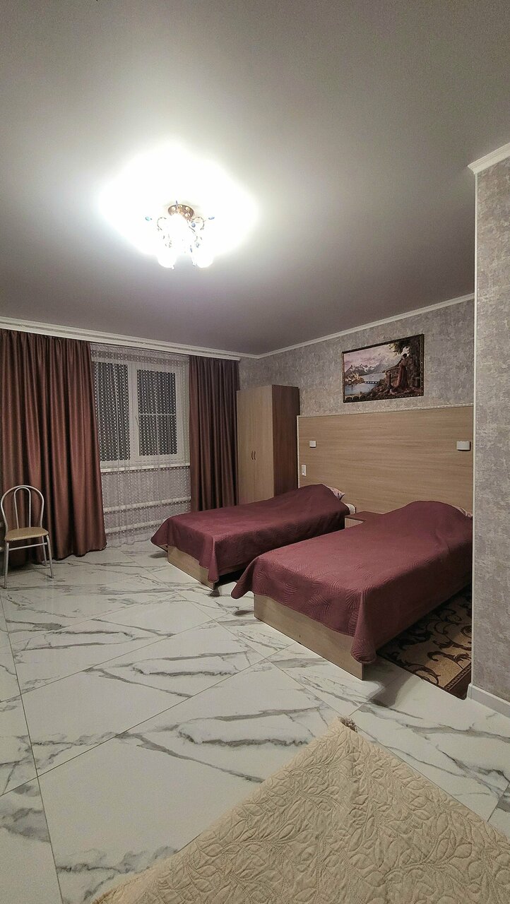 Ура!!! Наконец-то мы нашли дом, где можно по настоящему отдохнуть в дороге! Здесь есть всё, что действительно важно : прекрасные кровати с мягкими ( не продавленными ) матрасами, удобства( душ и туалет) в комнате, горячая вода, холодильник, идеальная чистота!!! Комнаты просторные, мебель новая!!! Прекрасная закрытая стоянка! Хозяйке огромное спасибо за её труд и доброе отношение к нам. Теперь всегда будем останавливаться только здесь!!! И всем советуем! И ещё бы посоветовали другим владельцам гостевых домов взять пример с них. Ставлю не 5, а 10 баллов!!!