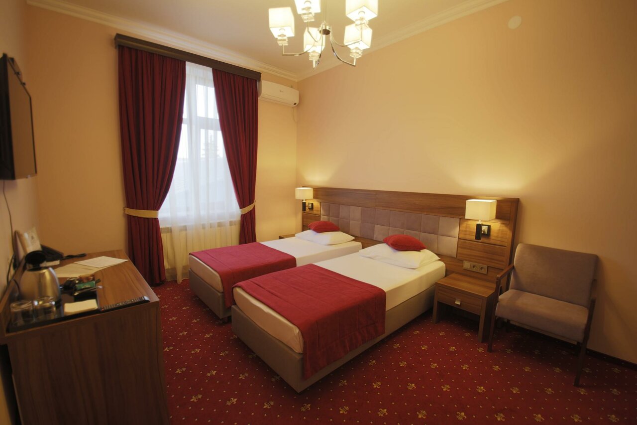 Хороший отель в центре города, в номерах чисто, есть все необходимое. Единственное, что в заявленном в люксе с двумя спальнями в номере по сути 1 комната с окном, большим диваном , другой мебелью и плюс помещение с двухспальной кроватью без окна и двери, там конечно достаточно просторно, есть кондиционер. Но это не люкс с двумя спальнями !!!! Завтрак обычный, чайник с посудой в номере. Ванная просторная. В целом впечатление приятное.
