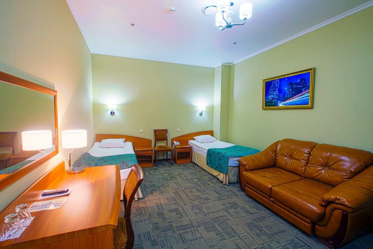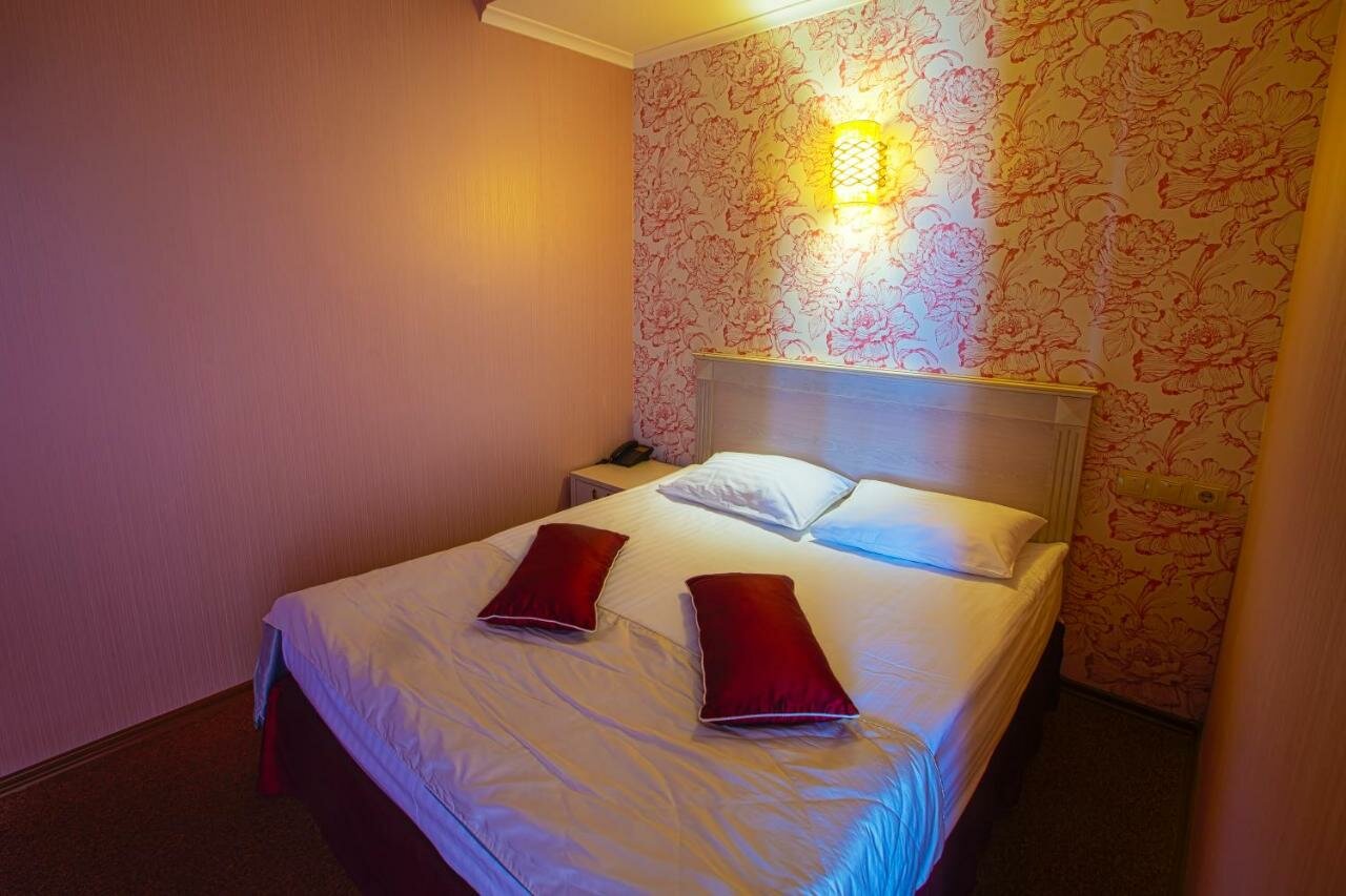 На первый взгляд все хорошо. Расположена в удобном месте, рядом парковка. Номер был просторный, постель чистая, кровать удобная. Но, есть минусы, которые растроили. При звонке сказали, что номер стоит 2500, приехали по факту 2700! И это без завтрака. В номере была только бутылочка с водой. Предупредили, что нас двое. Но, в номере полотенца, принадлежности, тапочки и т. д. было на одного человека. Кроме кровати, в номере был диван, стол, холодильник, кондиционер, телевизор, фен. Но без окон. Так, что шум извне нам не мешал. На утро меня ожидал сюрприз в виде клопа!!! У меня был шок! Визуально их больше не было, я перевернула всю кровать, посмотрела стены… Но он был единственный. Сначала подумала на одеяле жучок, взяла двумя пальцами прижала и как пошла кровь! Фу! До сих пор чешусь!!!!!!