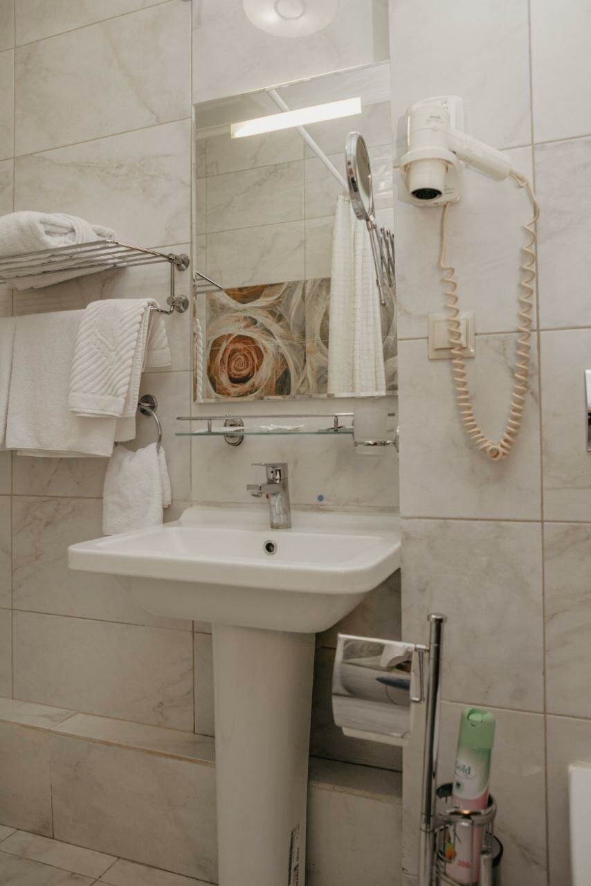 Прежде чем отдать деньги посмотрите номер. У нас был один с окном, а другой — без окна. Переселять отказались за отсутствием номером. А ночью началась вакханалия((( сначала я подумала, что обстрел города. Оказалось — ночной клуб. Так как мы приехали на три дня в город, то утром пришлось искать другую гостиницу и переезжать. Деньги не возвращают. Администратор такая, как будто у неё денег просишь, и не в долг, а насовсем (как уже позднее прочитала в отзывах). Руководству следует подумать о кадрах. Да, и мыльно-рыльных тоже нет. Они у администратора за деньги