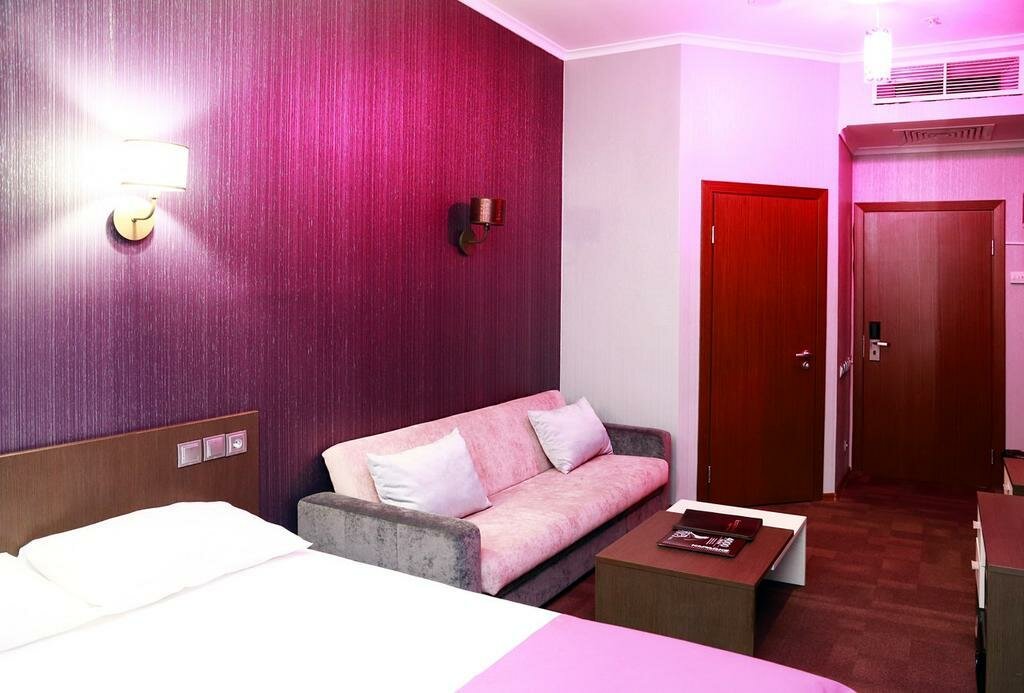 Отель расположен в торговом центре, рядом ночной клуб, но в номере не слышно. Обслуживание нормальное, персонал вежливый, всегда готовы помочь. Можно остановиться с собакой (доберман + 1000 рублей). Номера чистые, уютные. Окна не было. Полы в ковролине, есть нормальный телевизор. Можно дополнительно заказать завтрак (мне досталось: творожная запеканка с карамельным соусом, сендвич с ветчиной, очень вкусный. Где-то заказывают. Кофе в пакетиках 3в1)