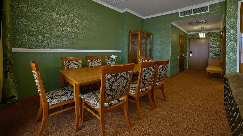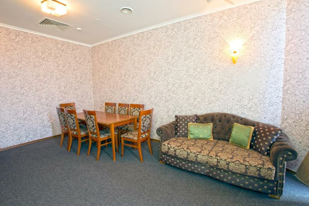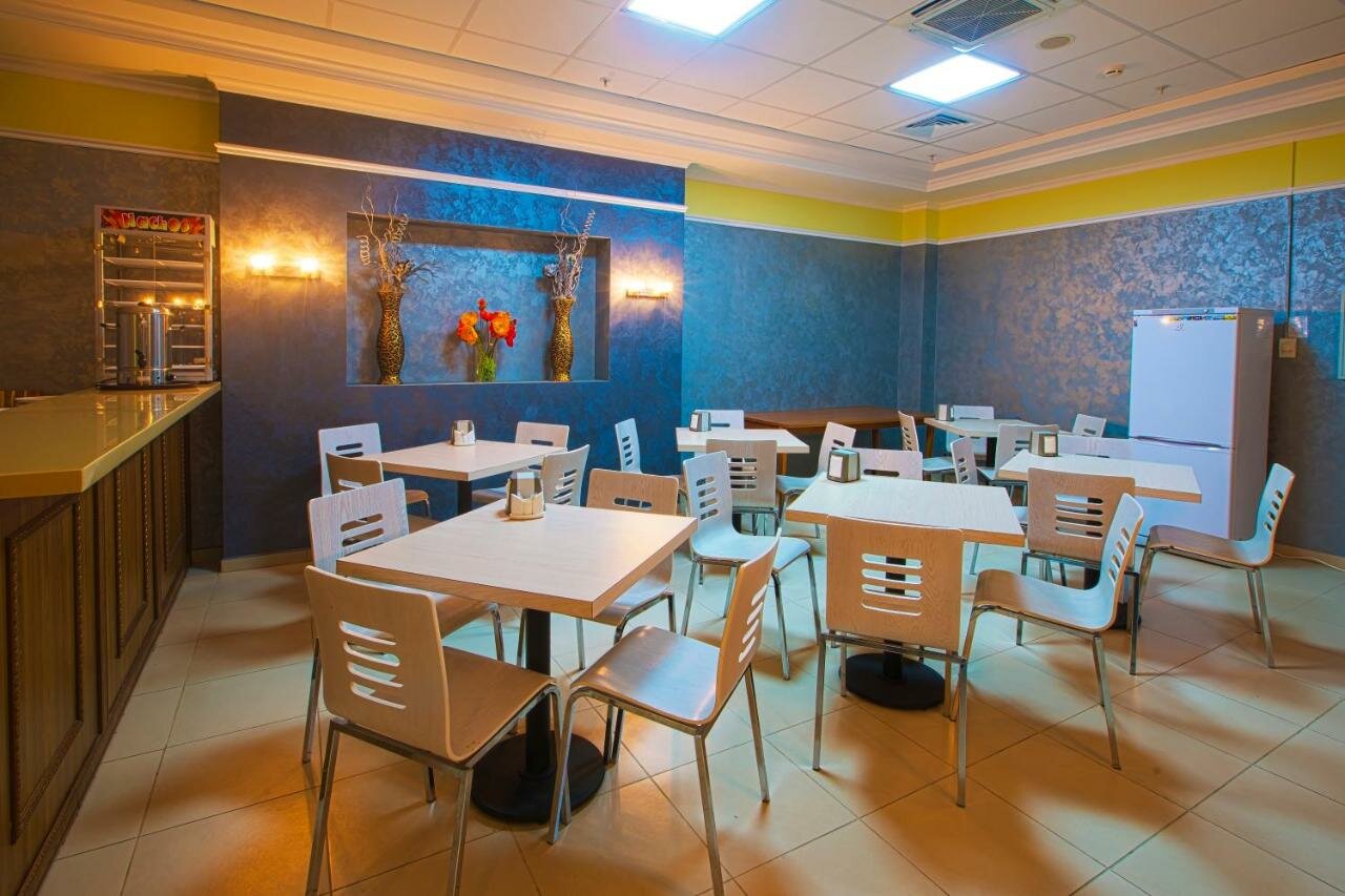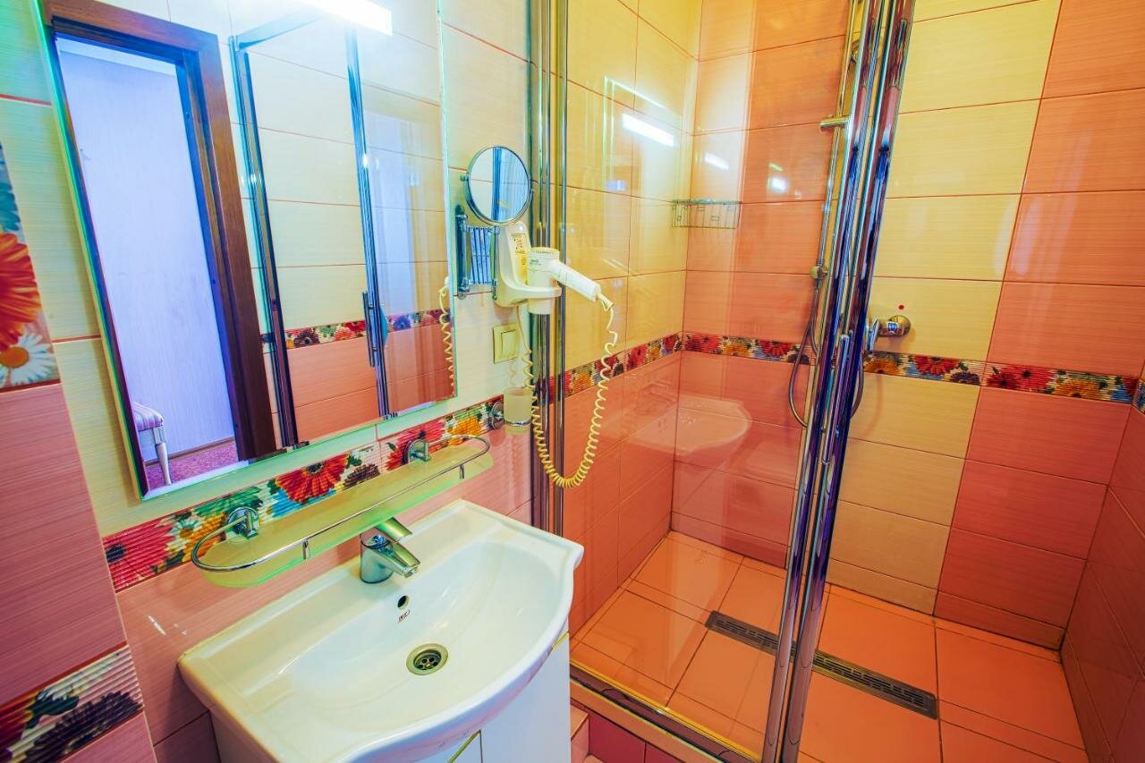 Ну номера так себе, за ту цену 2 дня проживания в номере ЛЮКС, где непоказывал телевизор так как сбили настройки приставки и не получалось подключиться к ней, нет холодильника хотябы мелкого (пусть даже без бара) и проблемы с подключением к хваленному свободному интернету неочень радуют! Напрягло что за эти 2 суток постоянно как в шалаше лежит картон на полу, неприятно! Подушки просто отвратительные (для тех кто любит не тонуть в них как в желе а дабы держать положение головы и шеи) Лифта нет, кондиционер шумноватый и запахи всё-же пробивались через него сверхних этажей, 3 этаж отель а на 4 и 5 бары и диско, но особо неслышал шум! завтрак на двоих был 2 тоста и 4 сырника с кофе и чаем (ну скажем так пойдёт) админы на ресепшене очень адекватные и подскажут что, куда, где, почём! Вывод: для делового прибывания именно в городе а вечером переночевать пойдёт но не более пары дней! Если более 2 дней то ищите что-то удобнее так как этому до 3х звёзд подтянуть надо условия