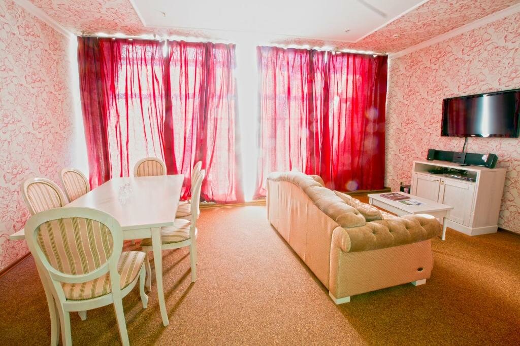 Заселили изначально в номер дешевле, пришлось доказывать, что мы оплатили другой номер. Переселили. Номер без завтрака, хотя в визитке и на сайте указано, что завтрак включен. Дополнительный санузел не работает, причем сказали, что давно. Джакузи по всей видимости не пользовались долго, потому что из всех отверстий лилось что-то чёрное. Набирали 3 ванны, все 3 раза грязь и ржавчина. В номере с шумоизоляцией беда. Слышна улица и то, что происходит за дверью. Своих денег номер не стоит.