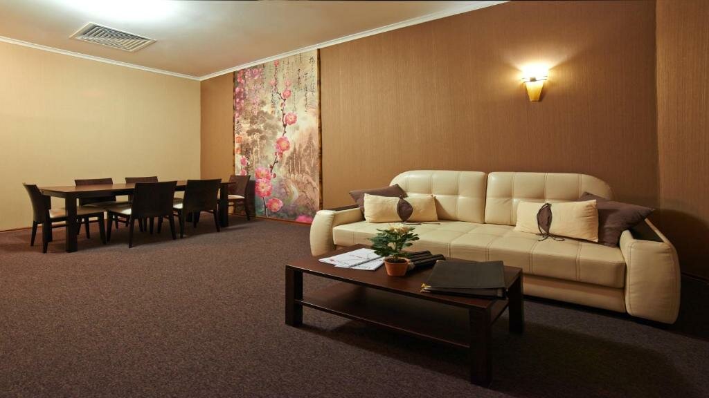 Прекрасное месторасположение: недалеко от аэропорта и вокзала, на одной из главных улиц Белгорода, бок о бок с огромным торговым центром ‘Мегагринн’. Номера уютные, кровати очень удобные. Есть кухня со столиками, горячей водой, холодильником, можно взять в номер посуду. Единственный минус: высокая слышимость в номерах. А еще непонятки с кондиционером: на обогрев он, похоже, не работает. Мы в апреле немного подмерзали. Брали номер без окна в целях экономии. Действительно очень выгодно, но в номерах с окном совсем другая атмосфера!)