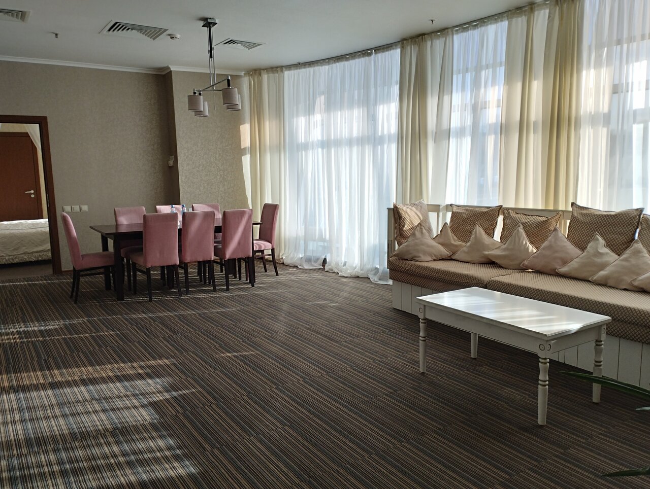 - Солнце нагревает номер через панорамные окна (кондиционер не спасает).