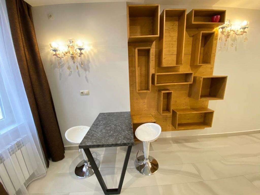 Очень красивый, комфортный и стильный отель! Шикарный номер, шикарная кровать, шикарный вид из окна. Есть плита и сковородочка, очень достаточное количество шкафов и трубочек для вещей, кастрюля приготовить кушать, чайник и все нужные приборы: чашки, ложки, тарелки, вилки. Лучше номера и отеля я ещё не видела очень рекомендую!!! Всё супер!!!! Если буду в Белгороде то обязательно заселюсь в этот отель снова.