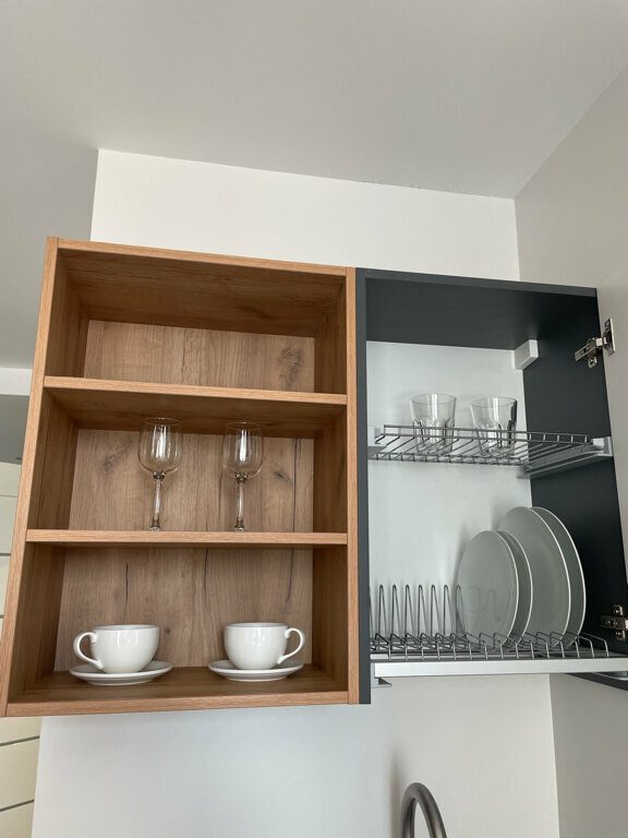 - Хорошая оснащенность номеров (кухня, посуда, техника).