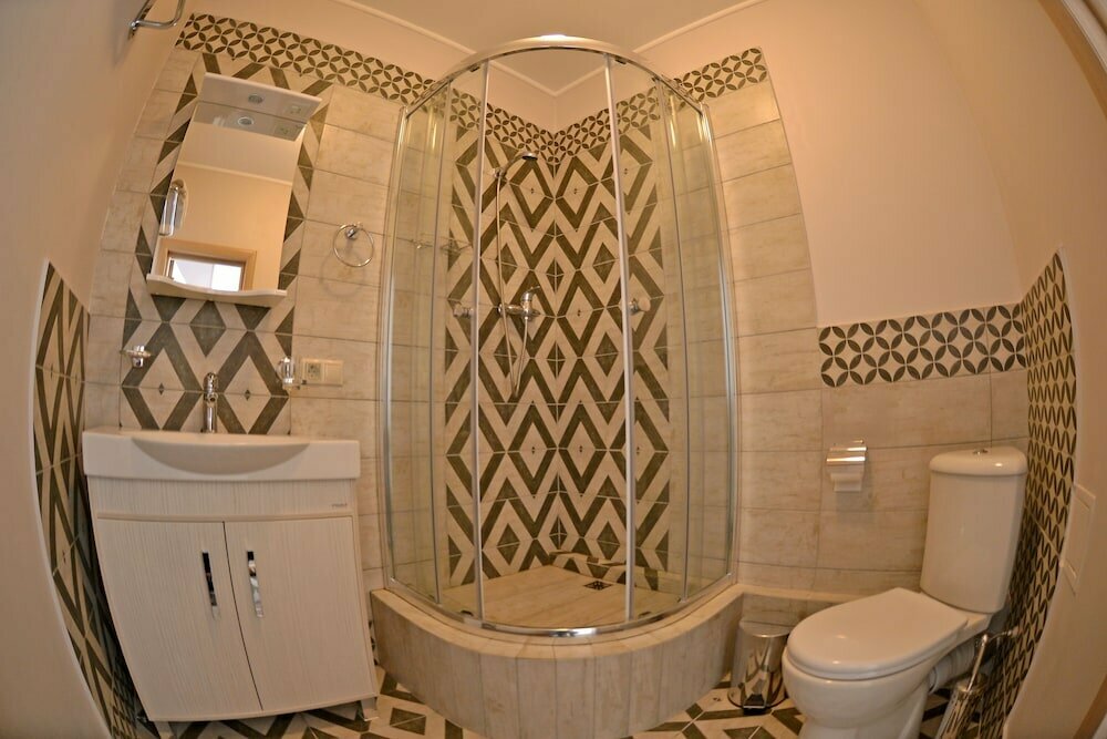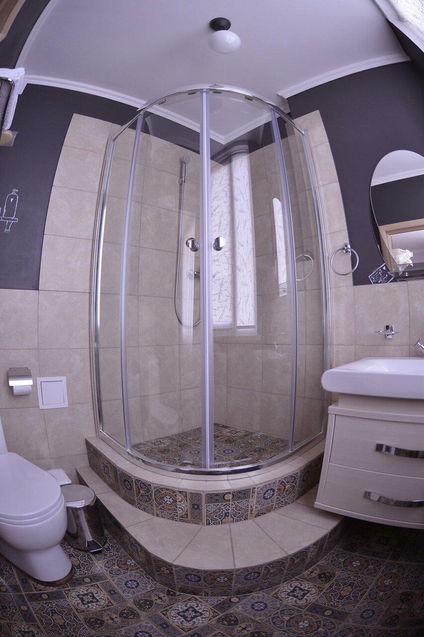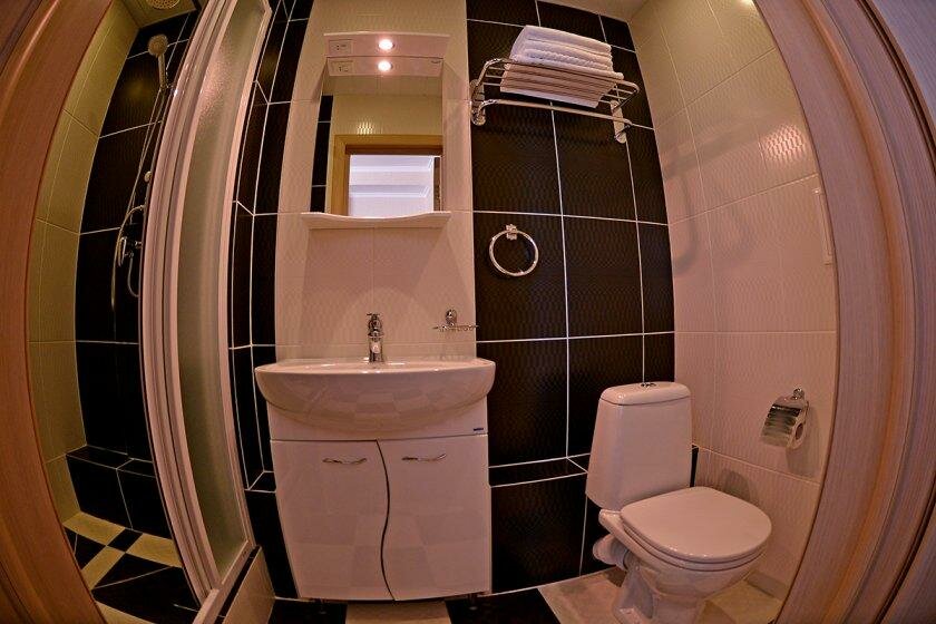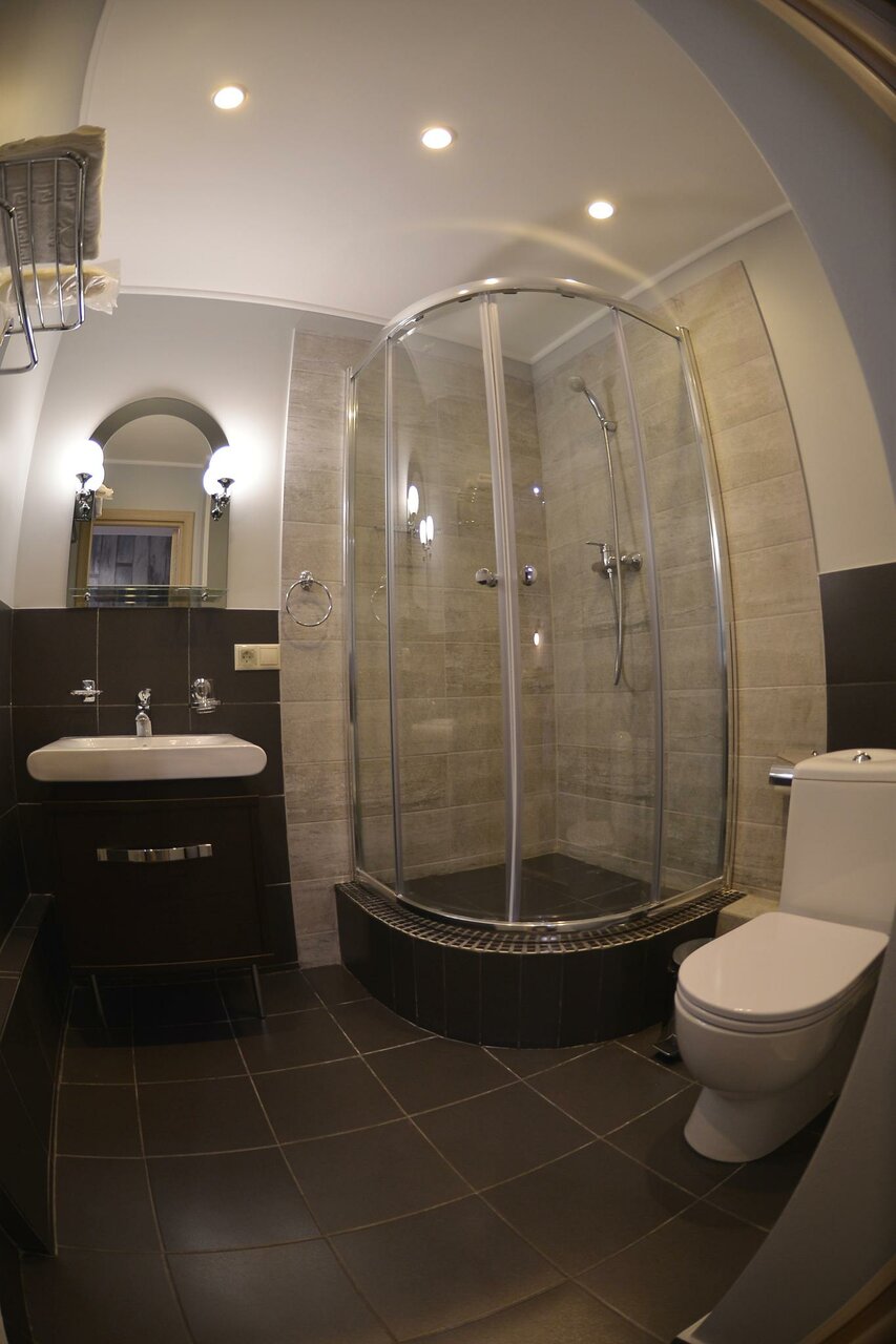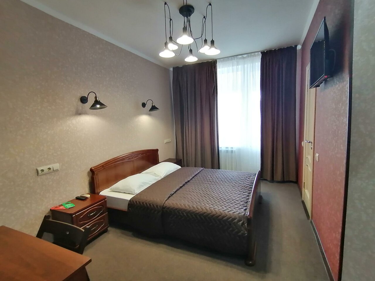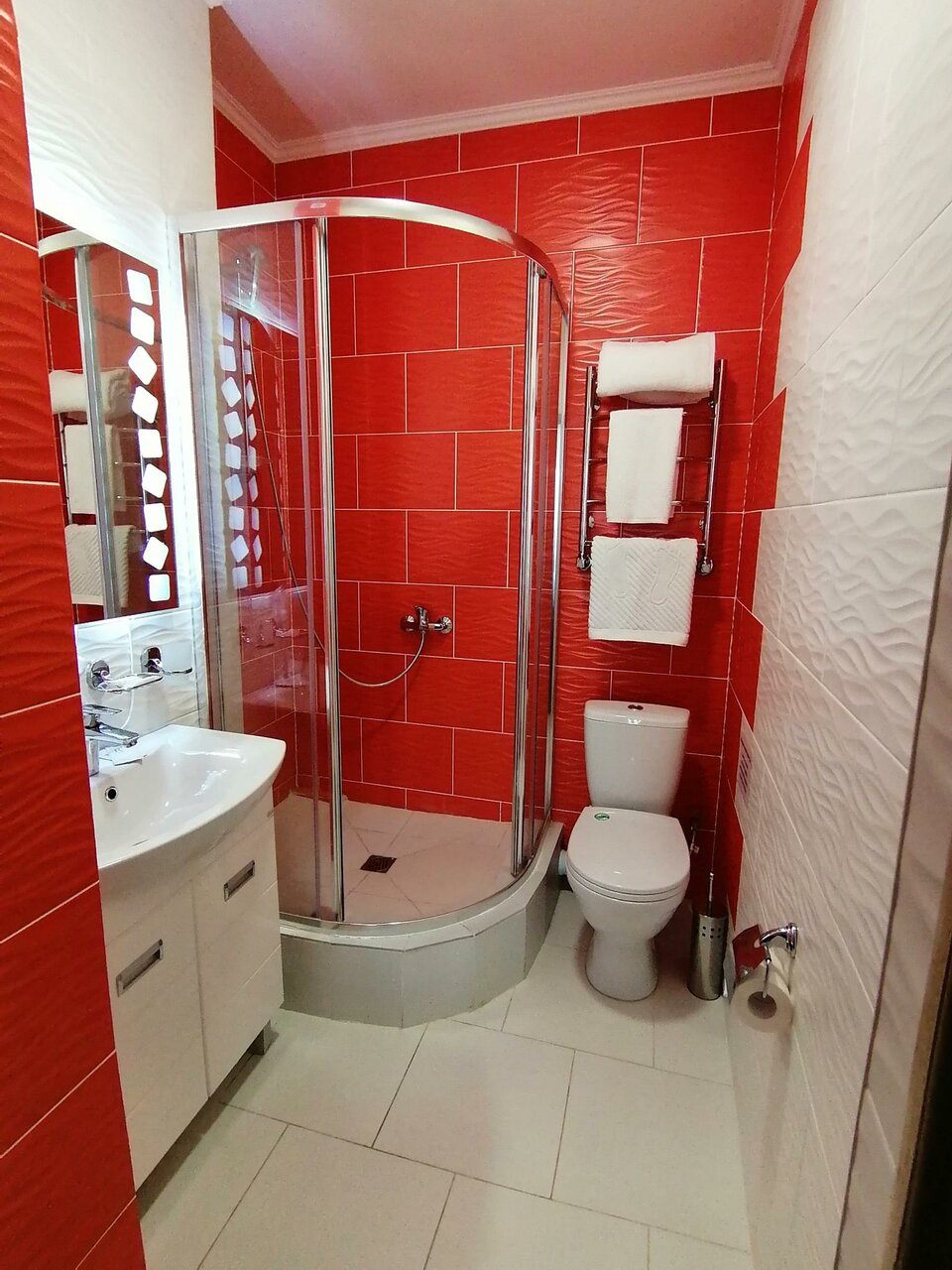 Номер просторный, душевая кабина, туалетные принадлежности, тапочки всё есть. Завтраки готовят тут же, в скучно и сытно. Персонал понимающий и вежливый. Гостиница в центре. Внизу До-до пицца и много рядом кафе. Жд вокзал в шаговой доступности