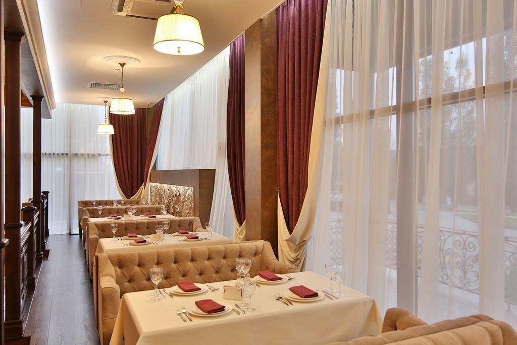 Очень вкусная кухня. Шашлык всегда сочный и вкусный. Очень уютный и красивый малый банкетный зал. И еще плюс ресторана это летней площадка.