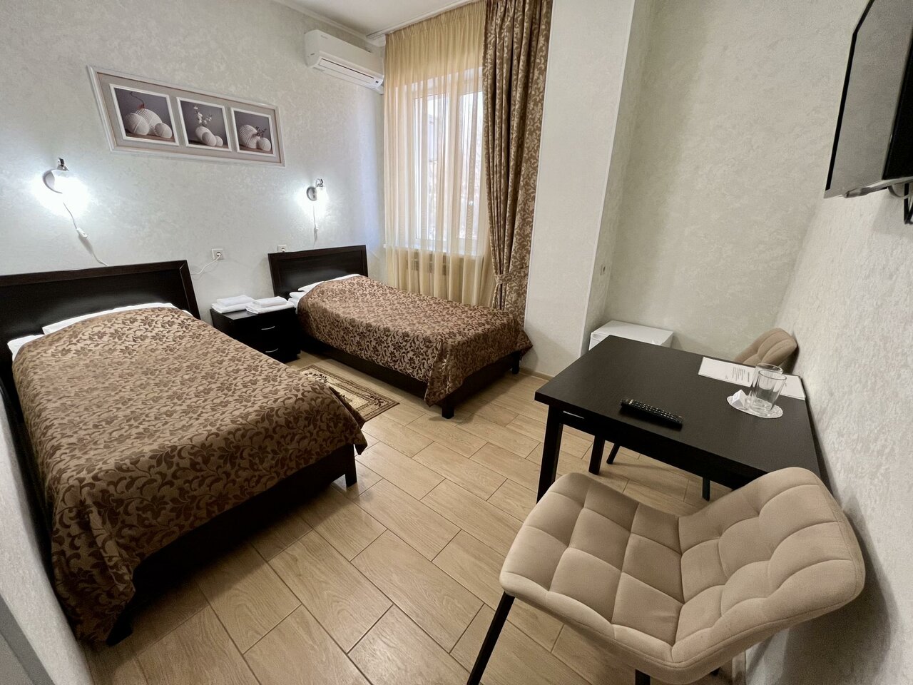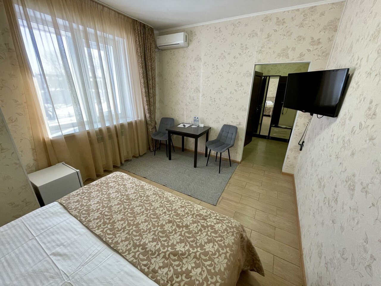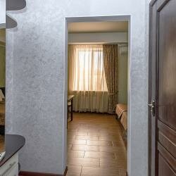 Уютная гостиница.Вежливый персонал.Номера чистые, в номере все работает(кондиционер,телевизор,домофон). Завтрак на выбор.Вкусная еда. В номера можно заказать с ресепшен перекусить ,воду.