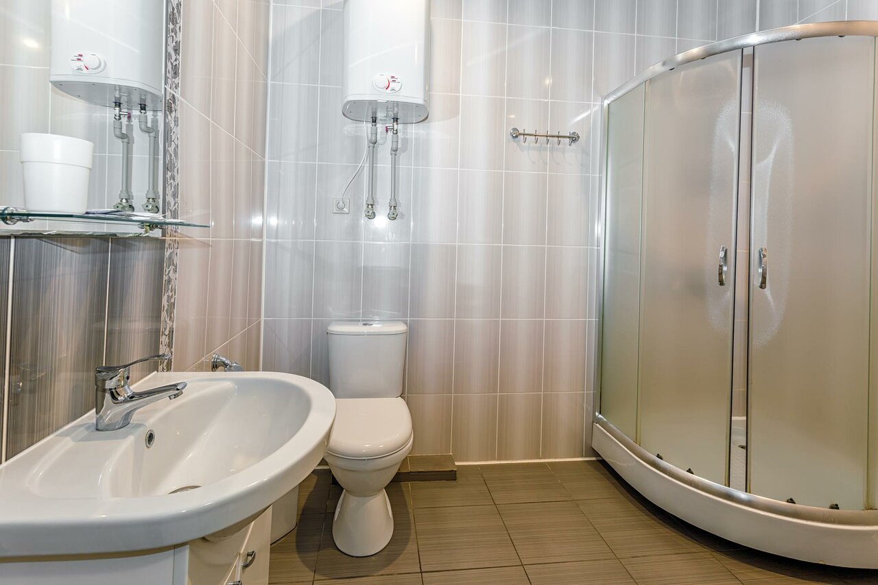 - Сильный напор воды в душе.