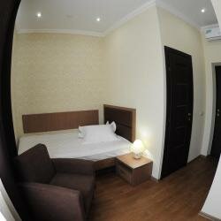 Плюсы гостиницы: удобное расположение, чистый опрятный номер (я жила в ‘стандарте’), белоснежное постельное белте и полотенца, халат, удобный душ с хорошим напором воды, грамотно расположен кондиционер. Конечно же, приветливый персонал. Небольшие минусы: гостиница на втопом этаже, лифта нет. С учетом вышесказанного: отличный вариант для командировочных или если Вы путешествуете налегке. Впрочем, если для Вас не проблема занести чемоданы на второй этаж, неудобств для Вас не будет. Даже в одноместном номере на кровати смогут разместиться двое взрослых людей. Демократичная цена и близость к центру города очень радуют. Рекомендую
