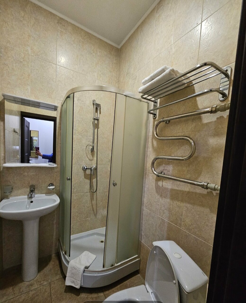 Номер за свои деньги неплохой, но есть мелочи, из-за которых оценка снижена. 1) Нет туалетной бумаги 2) Одно полотенце лежало между душем и полом 3) Вода в душе не смывается, там все внутри засорено 4) Цена ≠ качество 5) Пол в душевой холодный Из плюсов: 1) Подстроились под мое время прибытия 2) Все рассказали, показали 3) Завтрак прямо снизу вашего номера