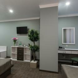 - Просторные и светлые номера.; Быстрое заселение в любое время суток.; В номерах есть чайник, фен, халаты, чай/сахар.; Современная мебель и хорошая сантехника.; Быстрое реагирование на просьбы гостей.