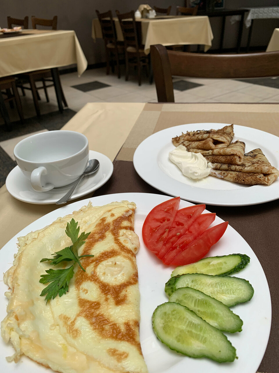На выбор несколько завтраков, но почему-то они не входят в стоимость номера. И цены завтраков разные от 300 до 600. Неудобные маленькие номера. Плохая шумоизоляция, а учитывая что гостиница находится рядом с шоссе, то это очень чувствительно. Такое впечатление, что я сплю на обочине дороги. Выбрать другой номер с лучшей шумоизоляцией или более просторный не было возможности, т.к. по словам администратора свободных номеров кроме этого нет.