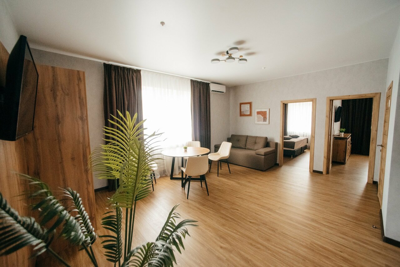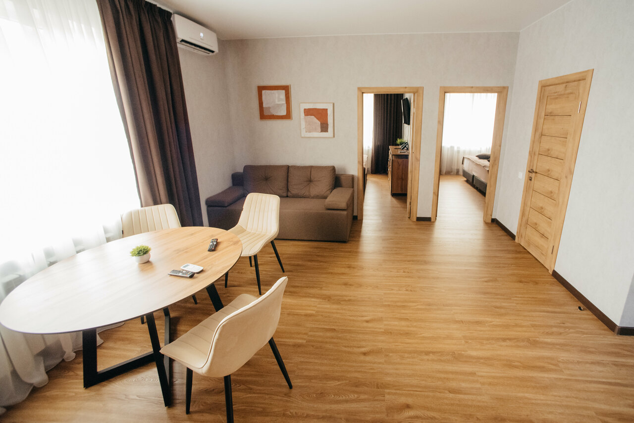 Много пространства и уюта - апартаменты De Luxe 50кв.м. В 300м от основного здания. Апартаменты включают уютную спальню, светлую гостиную, функциональную кухню, большой балкон, что создает идеальные условия для комфортного проживания. Апартаменты ...