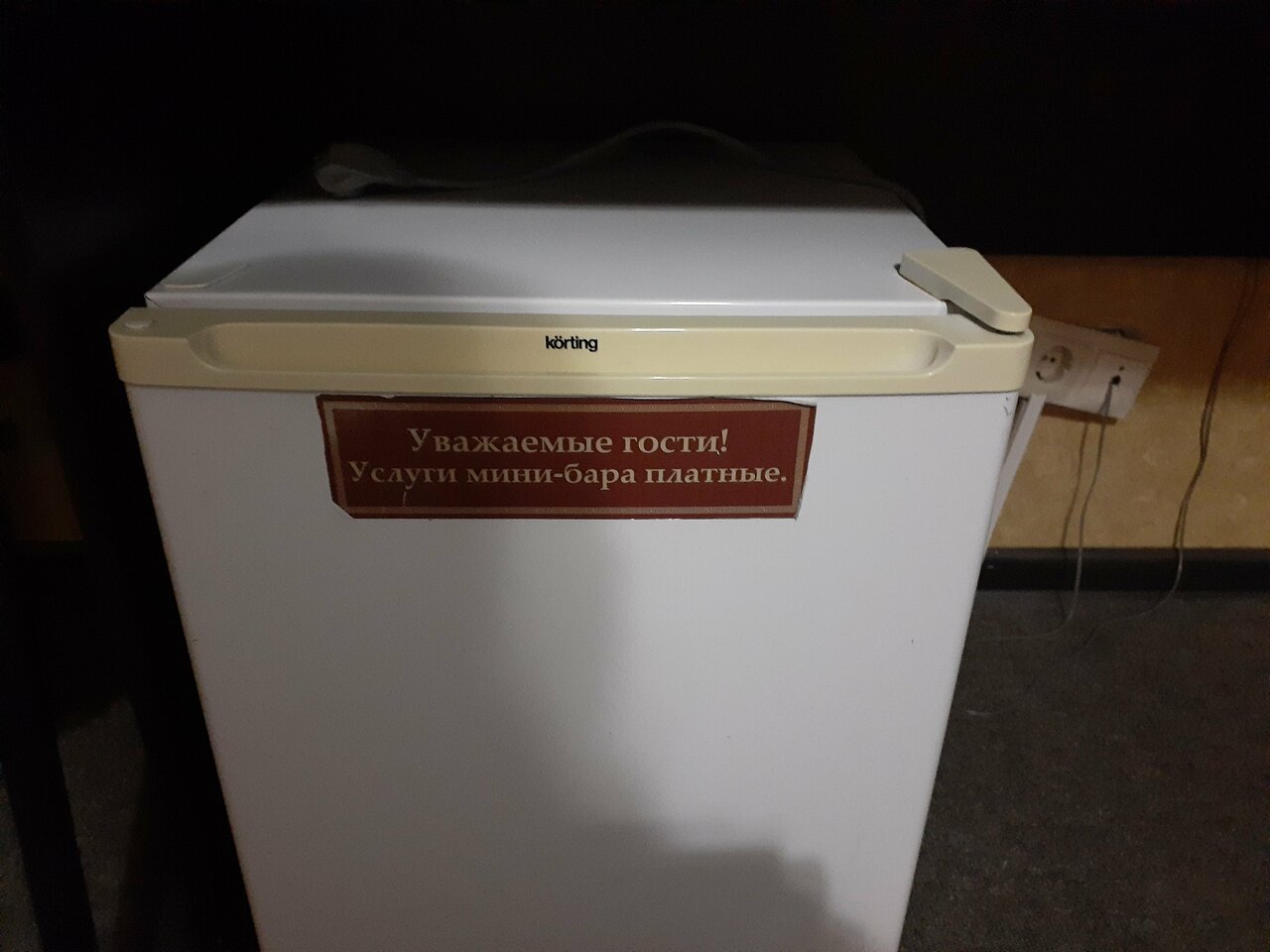Кафе не работвет, розетка одна на весь номер (за грядушкой кровати, ее еще отыскать надо), чайника нет, тапочек одноразовых тоже нет, вода в душе не спускается, краны в извести и грибке, вода в холодильнике по 50р. за 0,5 л. Т.е. если у вас нет с собой питьевой воды, кипятильника , чашек-ложек- будьте добры раскошелиться. ТВ 32 дюйма- с кровати его не то, чтобы не видно, пульт даже не всегда достаёт)))) утром неожиданно дверь открыли снаружи другим ключом и зашли в номер, пока мы спали, пришлось разнести… с испугу горничная забыла связку с ключами от всех (!) номеров в замке нашей двери: сколько они там провисели и кто успел ими воспользоваться- большой вопрос, к обеду мы вышли из номера обнаружили эту связку и вернули на стойку администратора. Ни ногой больше