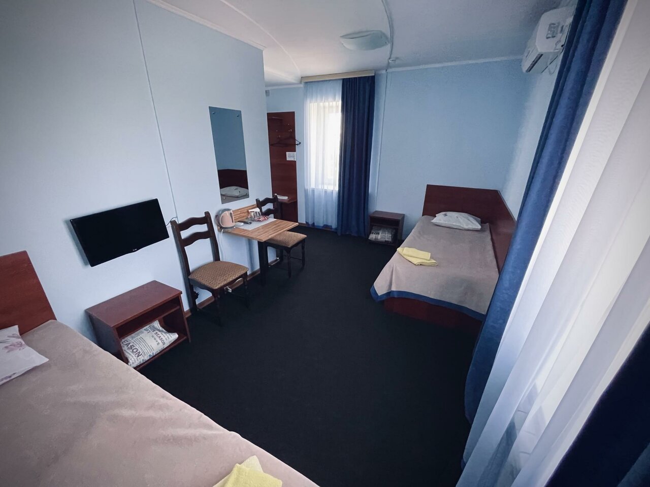 Двухместный номер с двумя кроватями, кондиционером, телевизором, чайником, туалетной комнатой с душевой кабиной и феном, интернет wi-fi.Для гостей с личным транспортом предусмотрена закрытая парковка на территории отеля. Рядом с гостиницей расп...