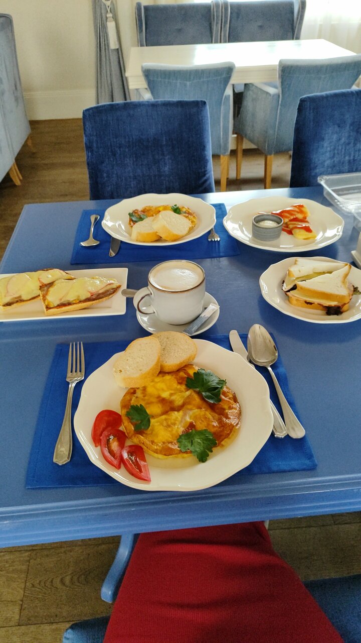 Вкусный завтрак, за окном шумная дорога, заселили на час позже стандартного времени, и днём и не следующий день один и то же администратор с красными от усталости глазами. Без такси до города не добраться, погулять вокруг негде. Есть паб.