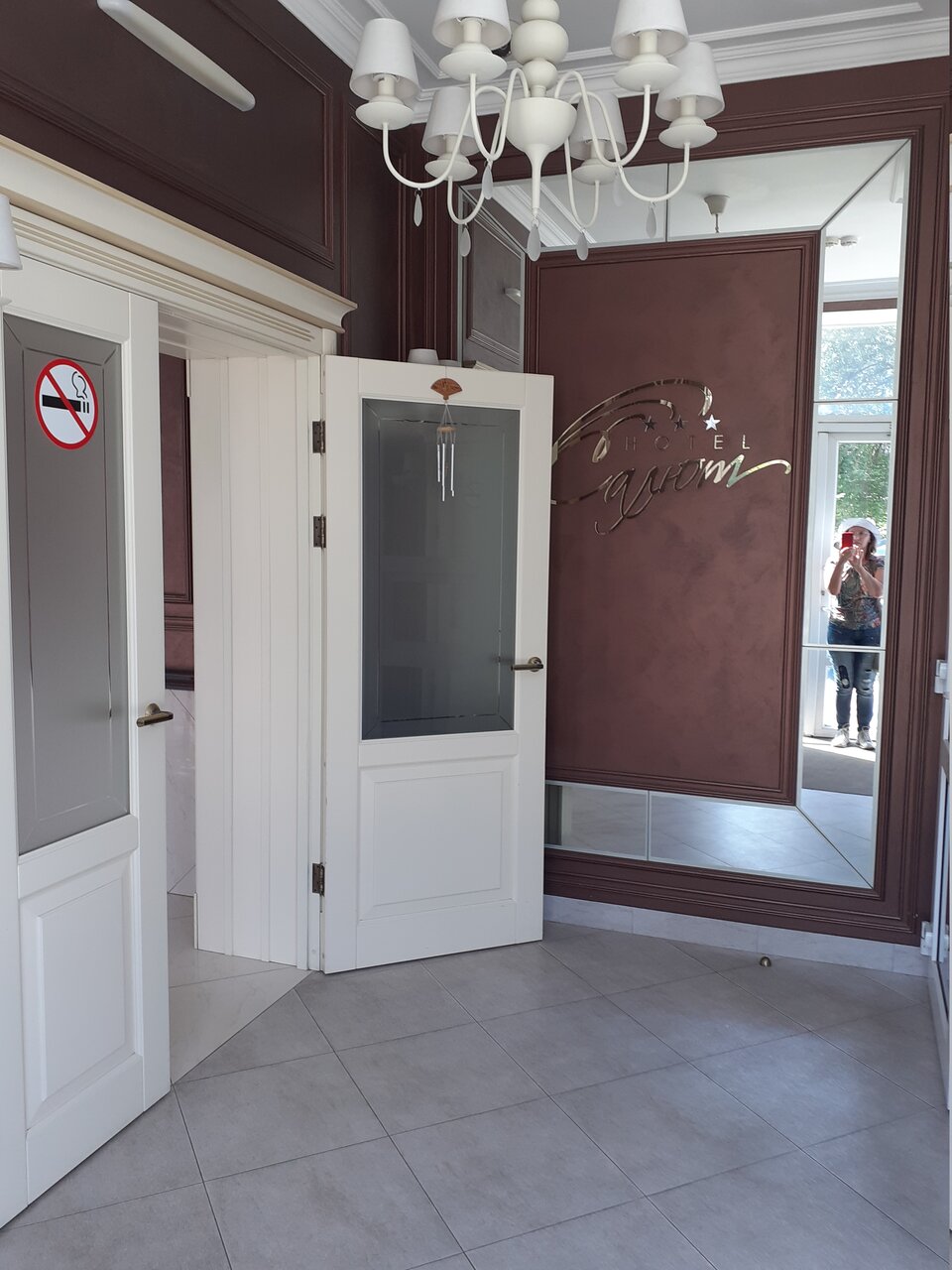 Отличное для меня расположение.На троечку санузел.Кровать удобнейшая.Место в номере(у меня был №2) много.Завтрак вкусный,не мало.Стоянка напротив,бесплатная.Я приехала поздно,было пусто,с утра всё уже заставлено машинами.Стоянка общая,не от гостиницы.Порадовал балкончик для покурить.Но в отеле Мята балкончик круче.Всё чистенько,мыло дали,тапки и пасту с щёткой нет.Полотенец было три.В общем,впечатление хорошее.В следующий раз остановлюсь.
