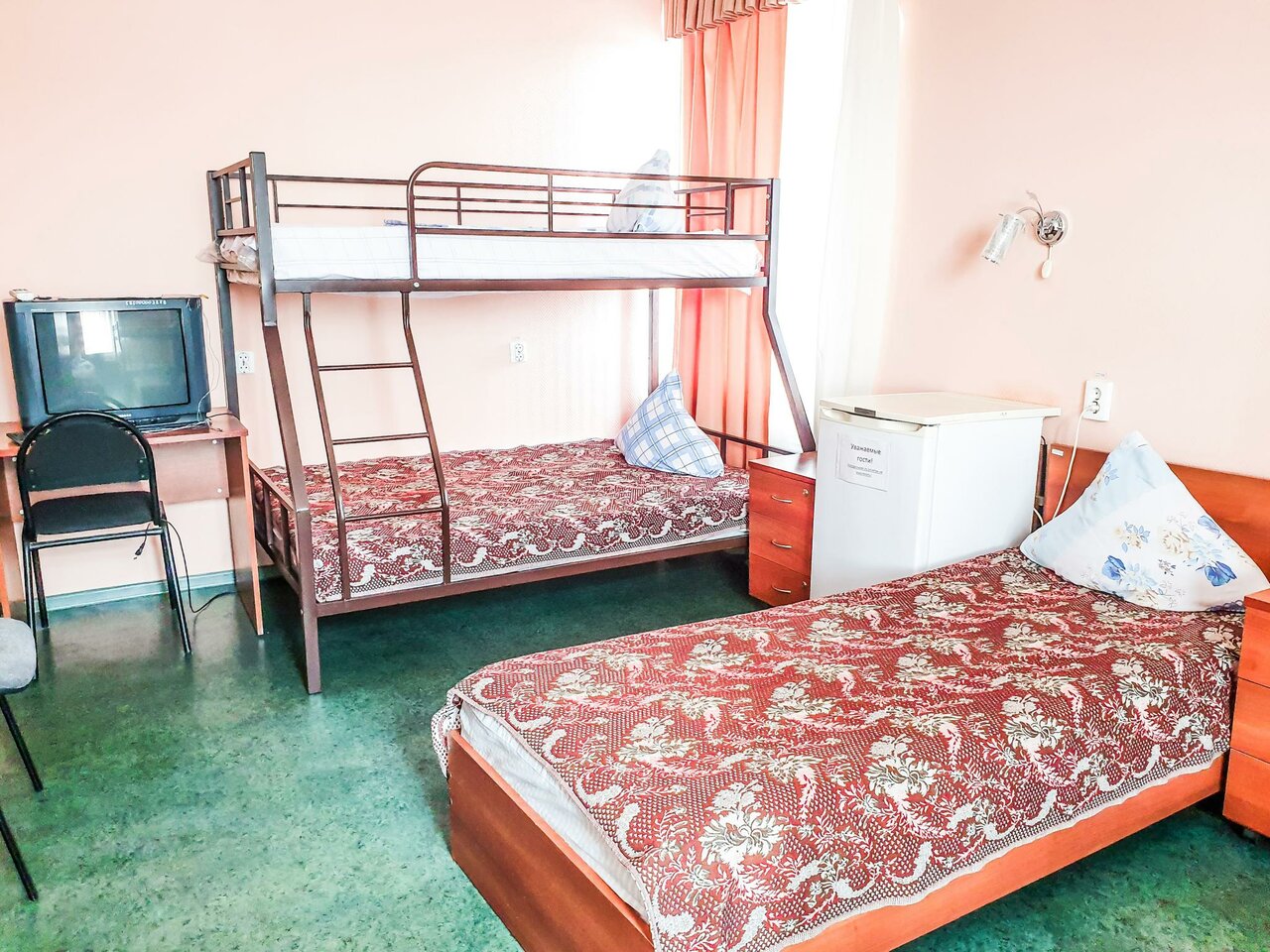 - Наличие отдельных номеров с удобствами.; Хорошая постель и холодильник в номере.; Добрый и ответственный персонал.; Чистота и уют в номерах.; Недорогие цены (2-местный номер за 2000 руб.).