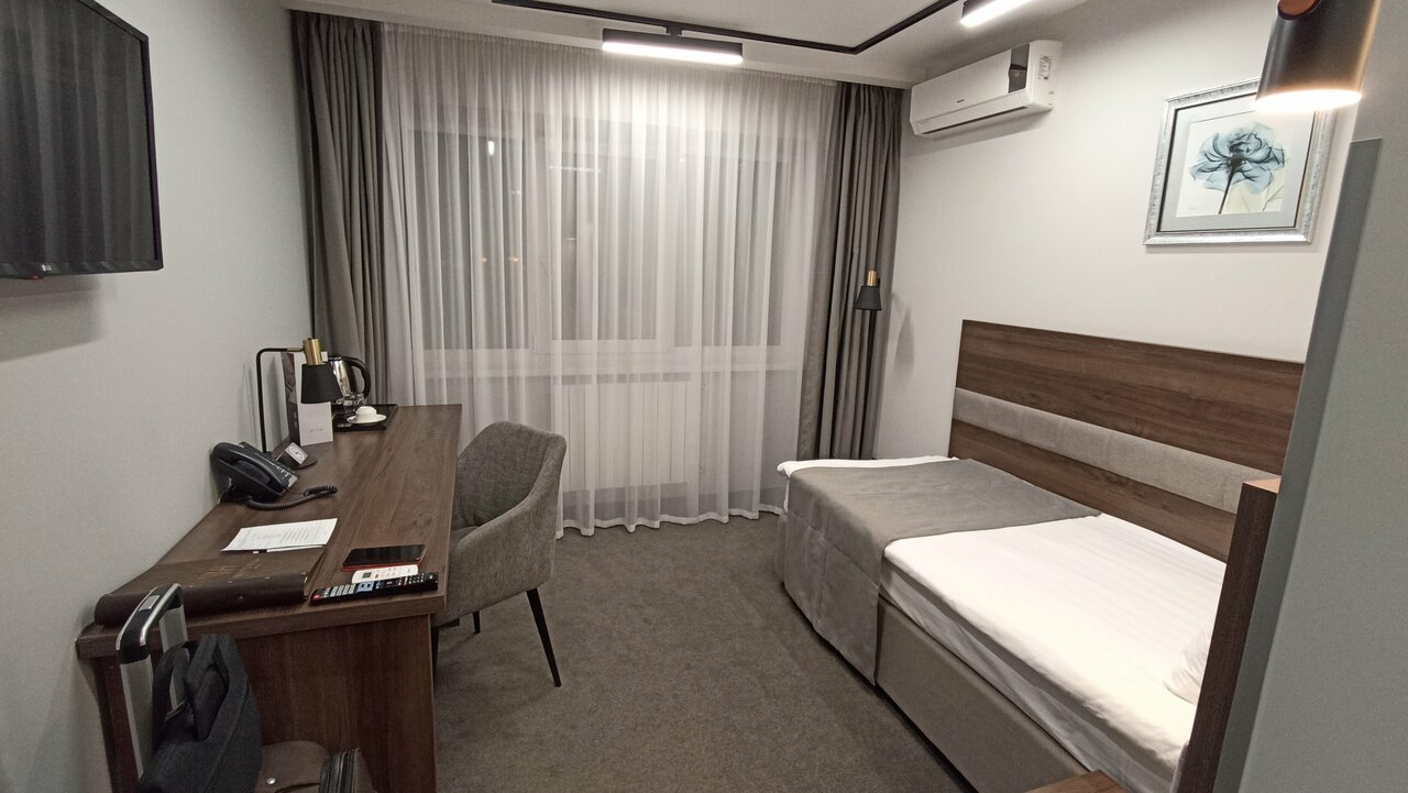 Отличная гостиница с хорошим обслуживанием. В одноместном стандарте удобный матрас, рабочее место, кондиционер, москитная сетка. Рядом пешеходная зона, где можно прогуляться вечером, в пешей доступности кафе и магазины. Отдельное спасибо персоналу на ресепшене за высокий уровень обслуживания.