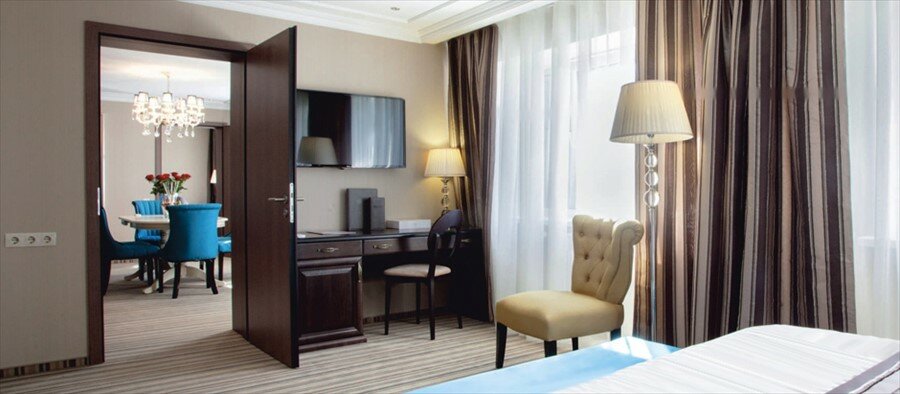 Номера просторные, комфортные,светлые, чистота стерильная, ремонт современный, всё исправно. Обслуживание ненавязчивое и своевременное. Мы брали со ‘шведским’ завтраком и он очень разнообразный по ассортименту. В общем, полностью соответствует своим 4 звездам