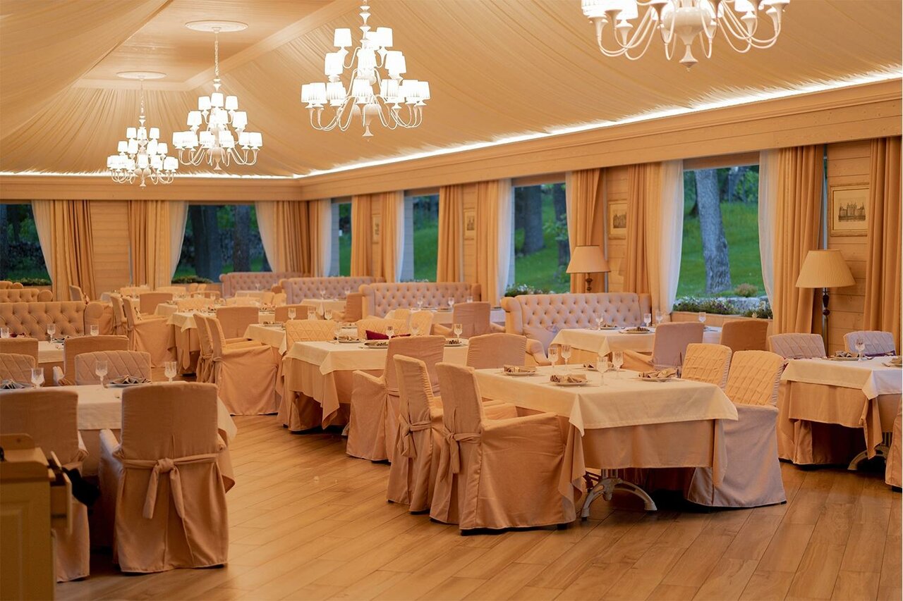 Вкусно, красиво. Стоит в сосновом лесу, можно прогуляться. Хороший сервис. Очень торжественная обстановка!
