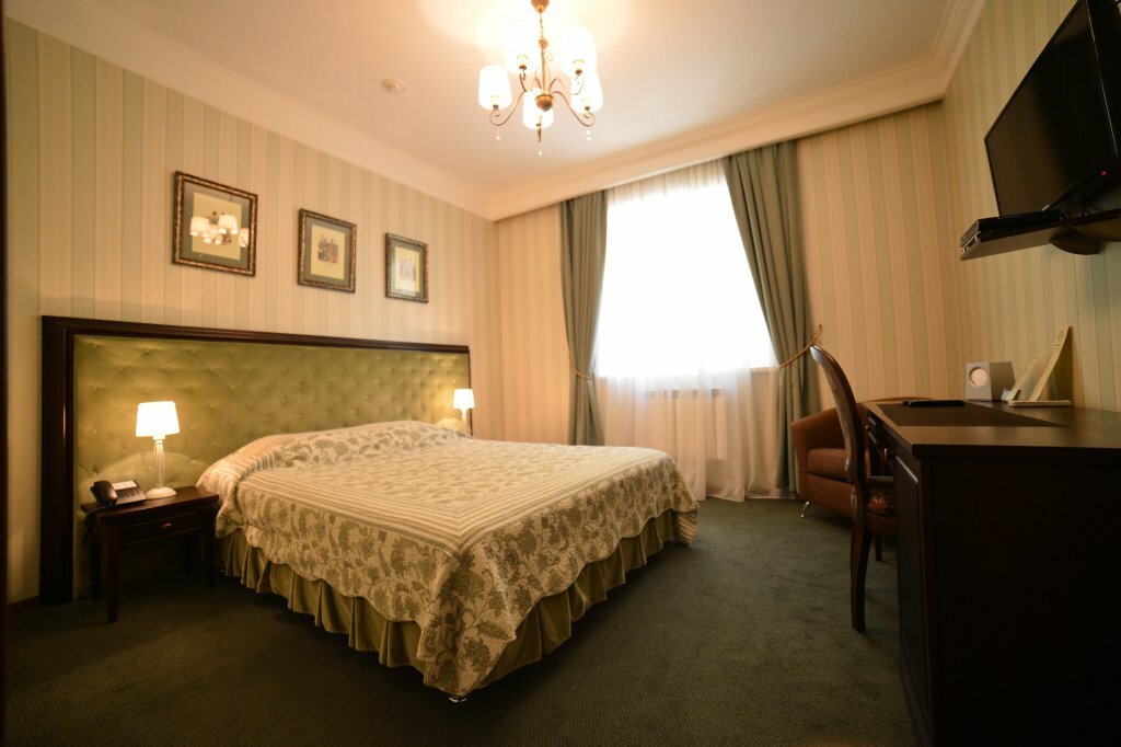 Удобства: — Номера с кондиционером, Wi-Fi, ТВ, мини-баром, санузлом, феном, халатами. — Ресторан, бар, караоке, химчистка, прачечная, прокат авто. — Для гостей: чай/кофе в номерах, детское меню, номера для некурящих.