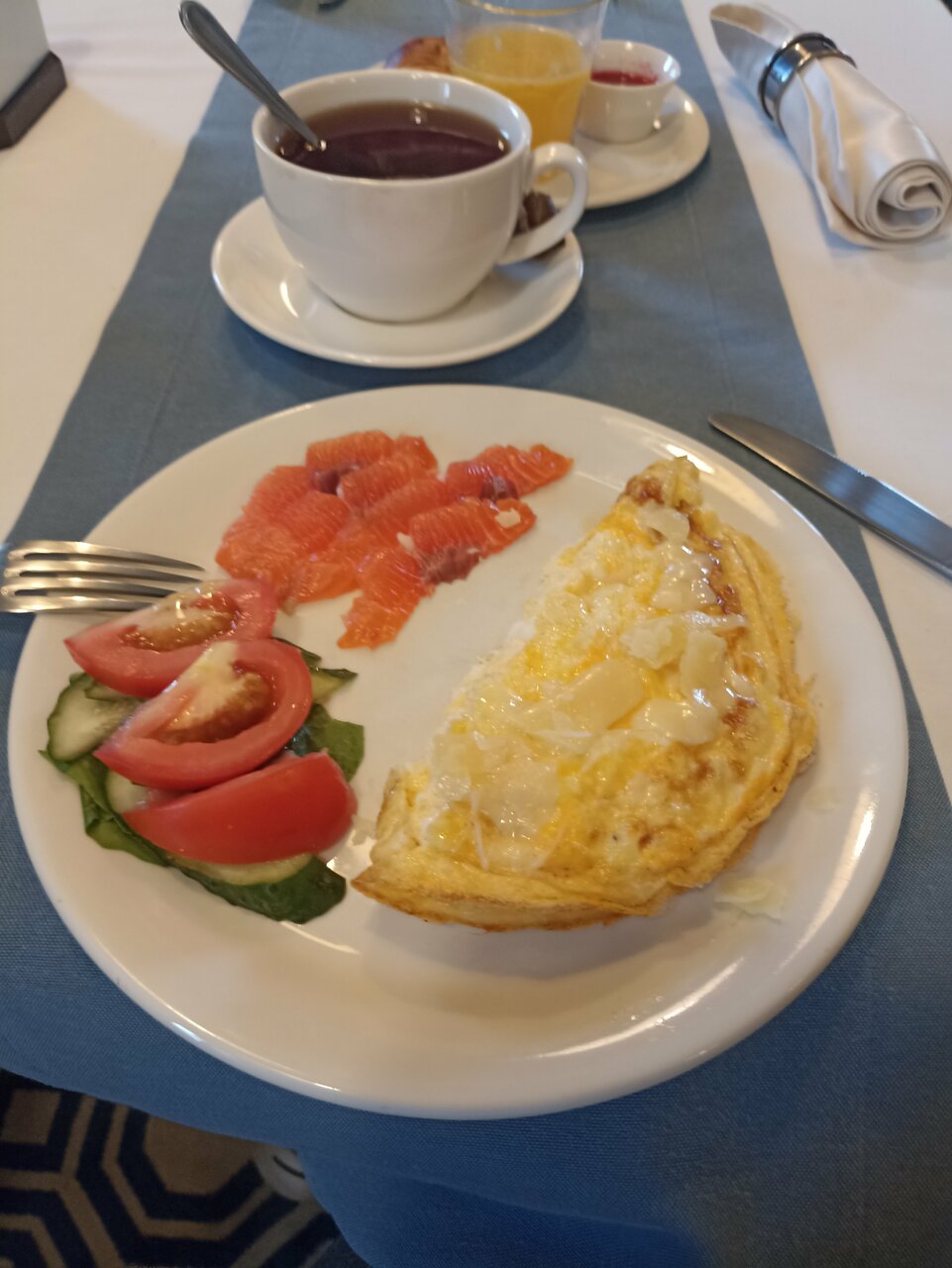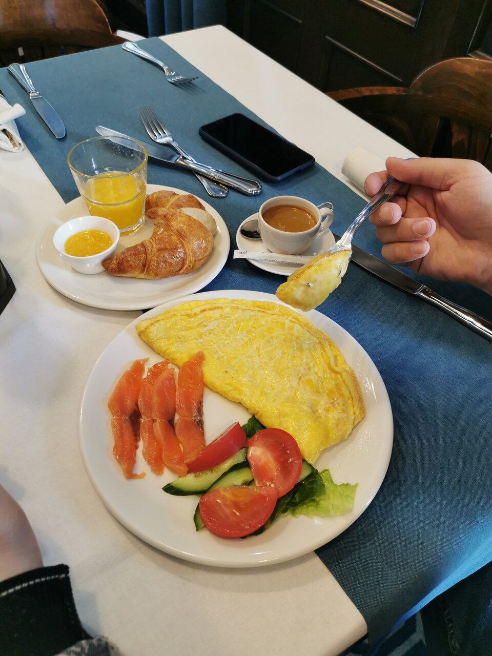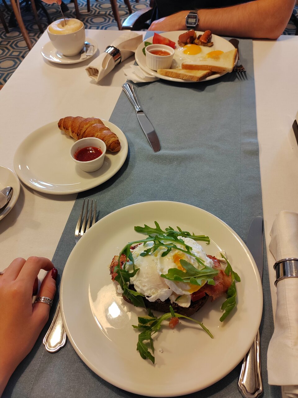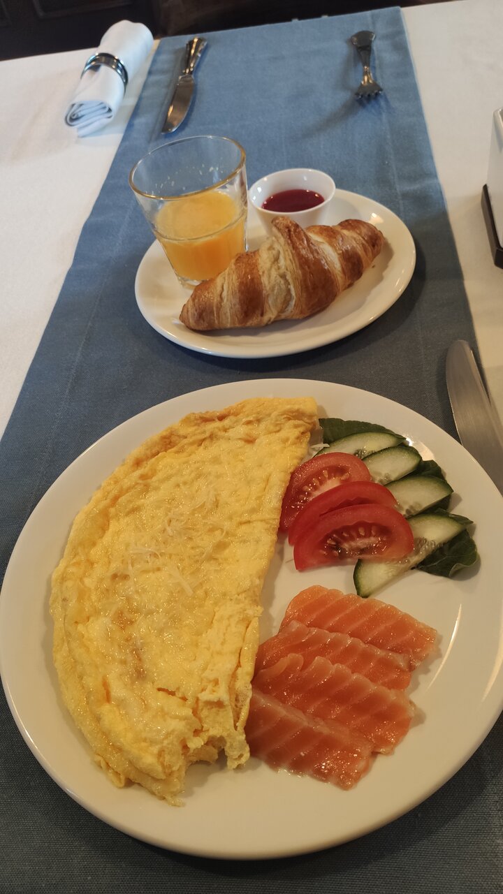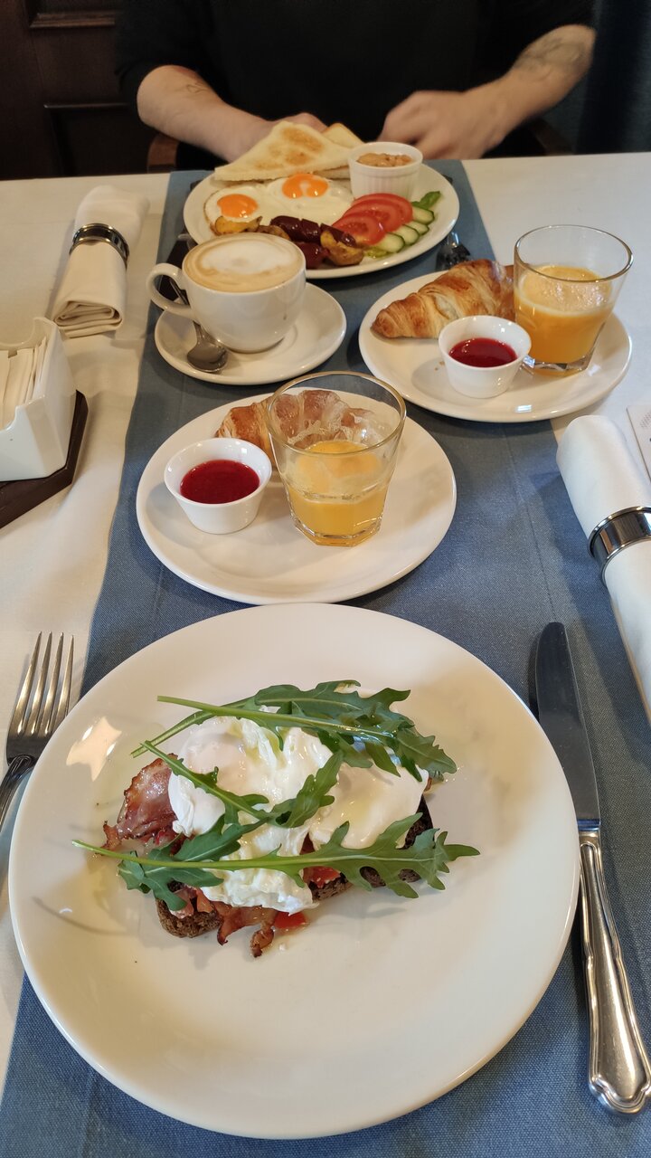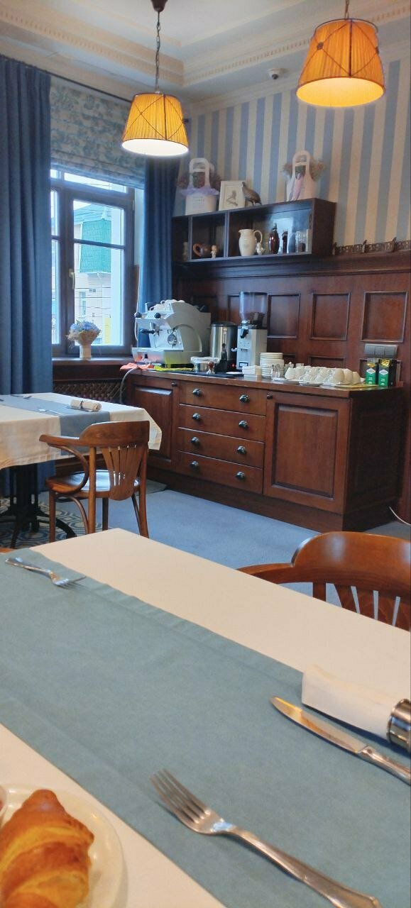 Первое впечатление- очень приятное. Находится в самом центре города, легко найти. Внутри царит особая атмосфера, красивый интерьер, доброжелательный и внимательный персонал, очень уютный номер. Дальше начали вылазить минусы- в душе вода очень долго прогревается, приходится несколько минут стоять ждать когда вода станет хотя бы тёплой. Напор никакой… Потолок в номере издает какие-то странные потрескивающие звуки. Также непонятно как закрыть дверь изнутри, чтобы снаружи не вошли. Она всё равно открывается. Обслуживающий персонал смог зайти в закрытую изнутри дверь. Мда. Но неприятности сгладили завтраки. Удобное время- с 7:00 до 11:00. Приятное место, как в ресторане, обслуживание на высшем уровне, официант сам приносит заказ, всё быстро готовят, при этом сама еда очень вкусная, сытная и подача на высоте. Кухне отдельное спасибо.