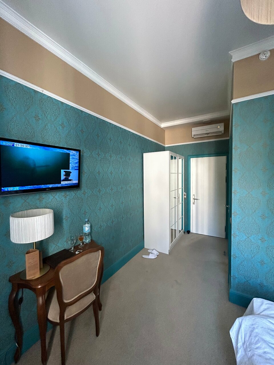 В размещение «бизнес»: не большая комната, душ, туалет, шкаф для одежды, сейф, телевизор. Хороший отель на 3,5 ⭐️